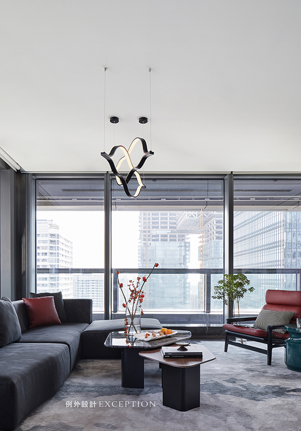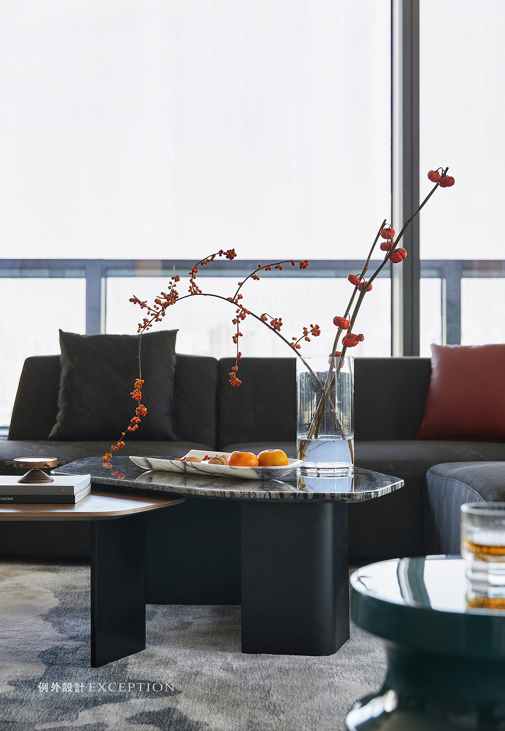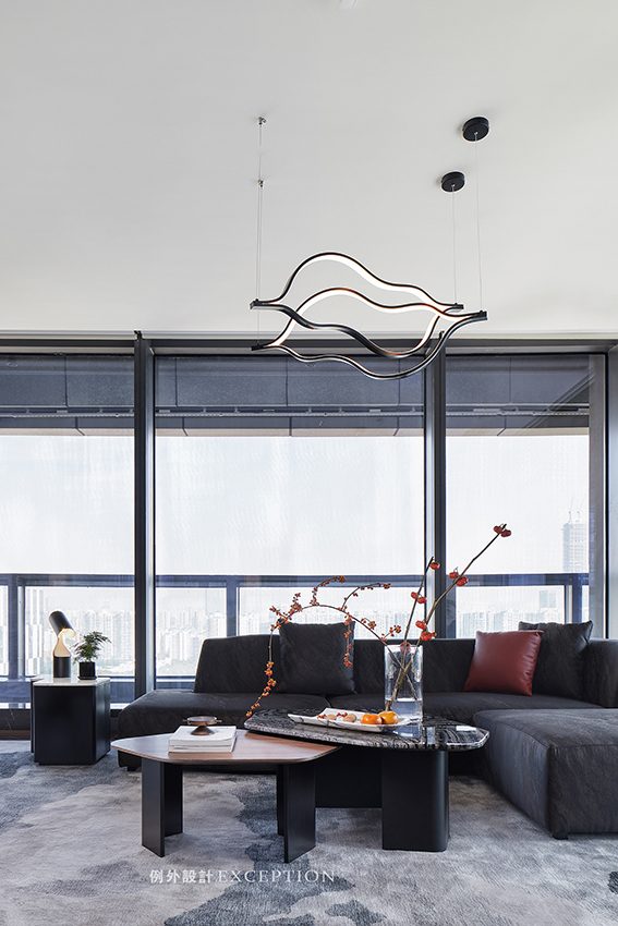 黑格爾認為,“美是理念的感性顯現。”大面積水墨地毯無形中鋪就一室的詩意風華,眼前沙河清麗,身后靠山長倚,傳統文化所帶來的美好寓意與現代設計手法結合賦予空間新的奢享體驗。