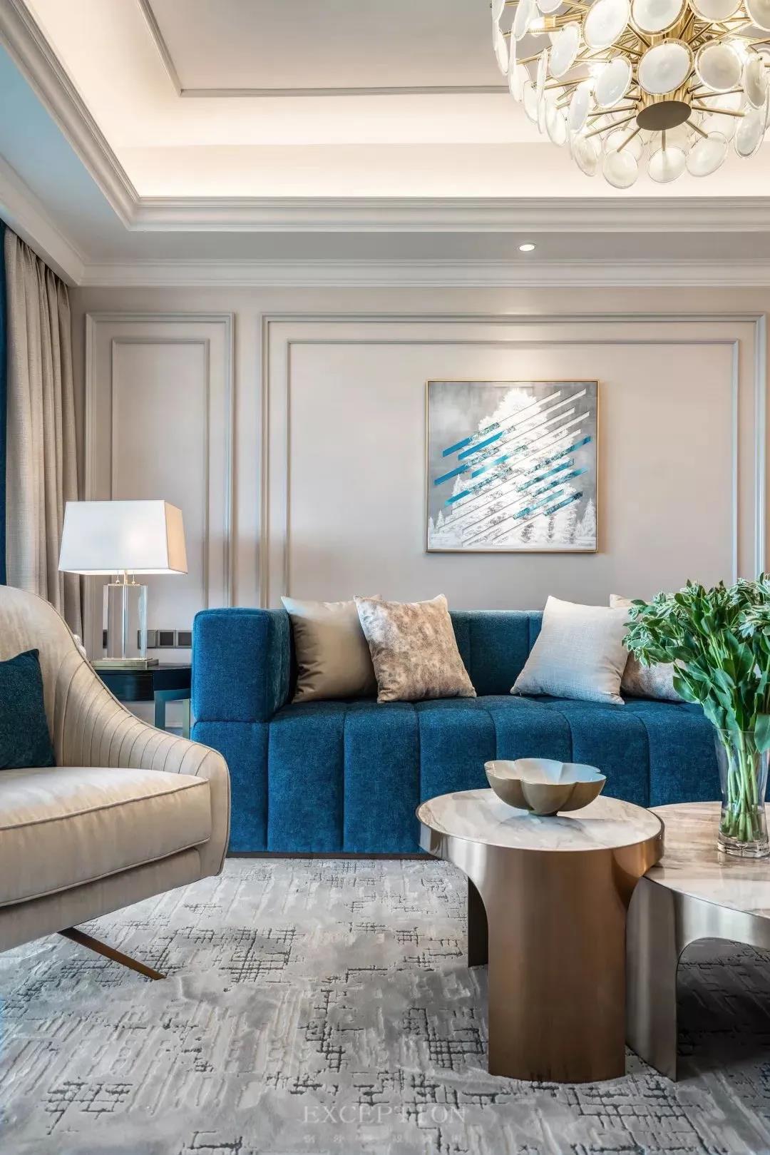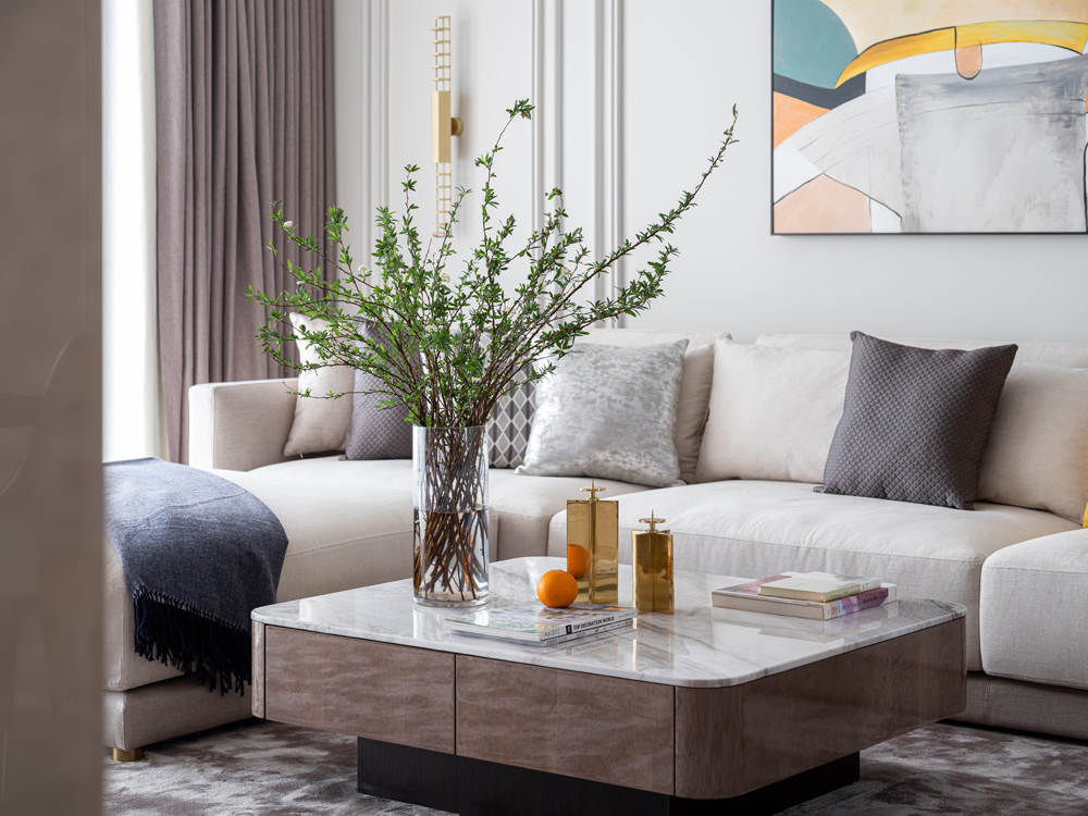 家私上以皮革、布藝、絨面為主,溫暖舒適。家具選用大理石、木來凸顯質感。