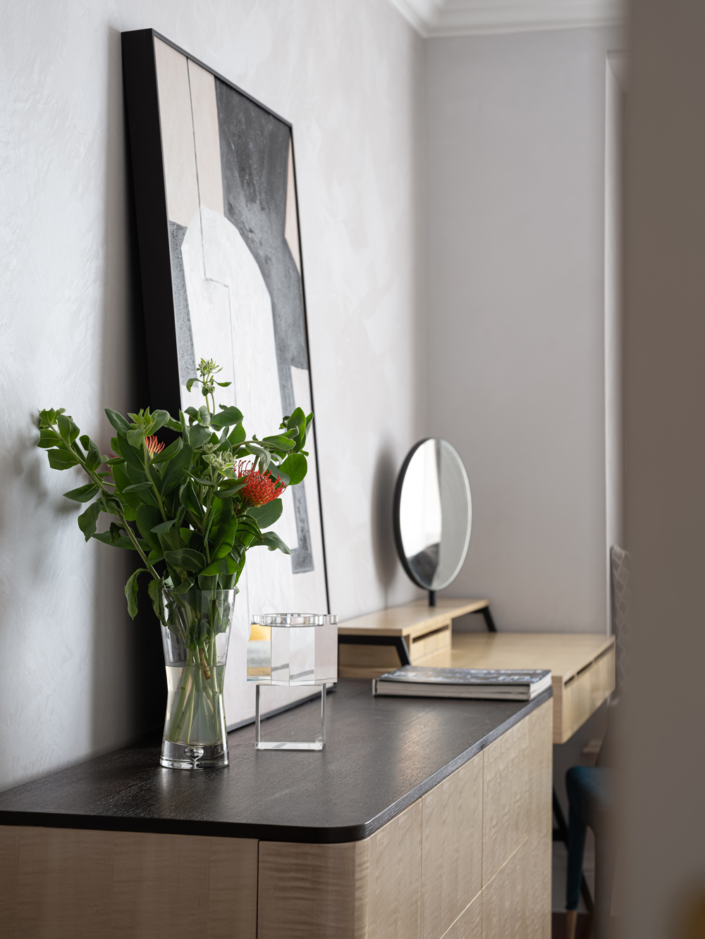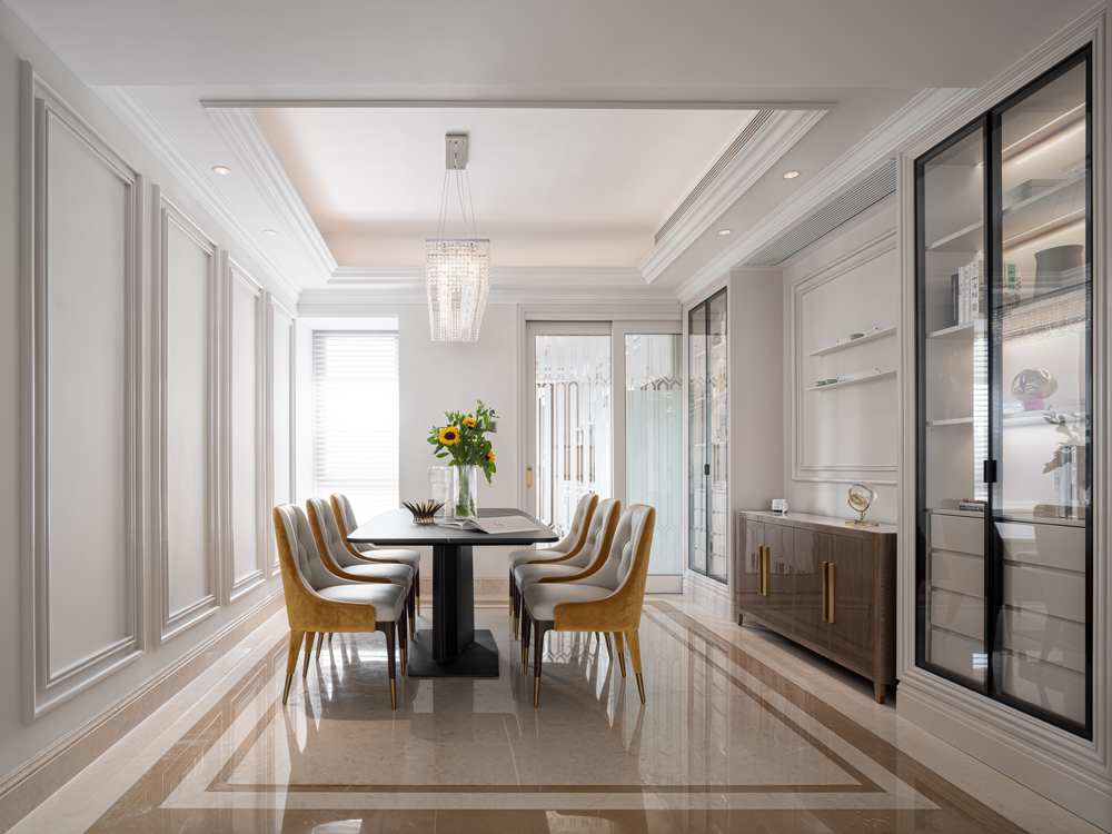 鑒于客戶對歐式輕奢美學的欣賞,鴻藝源在恒裕濱城原有歐式設計的基礎上,進行了一次美學上的優化升級,賦予空間素雅澄凈、奢于自然的藝術內核,通過定制化的設計讓生活的詩意萬象浸潤于點滴日常。