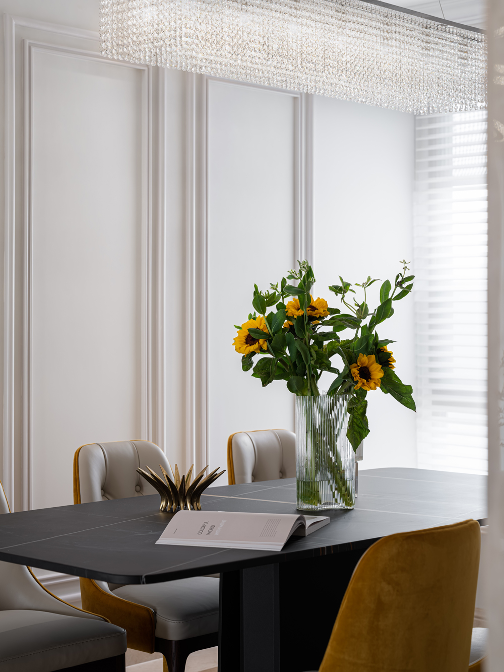 作為一個生活的調味空間,通透的空間給予居者更多有關美食藝術的想象力與理解,寓意希望的花枝在純凈的視界中散發鮮明而絢麗的審美意涵,在芳香中品味人生百味。