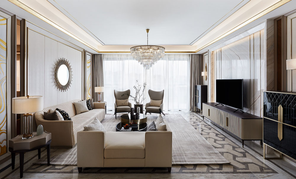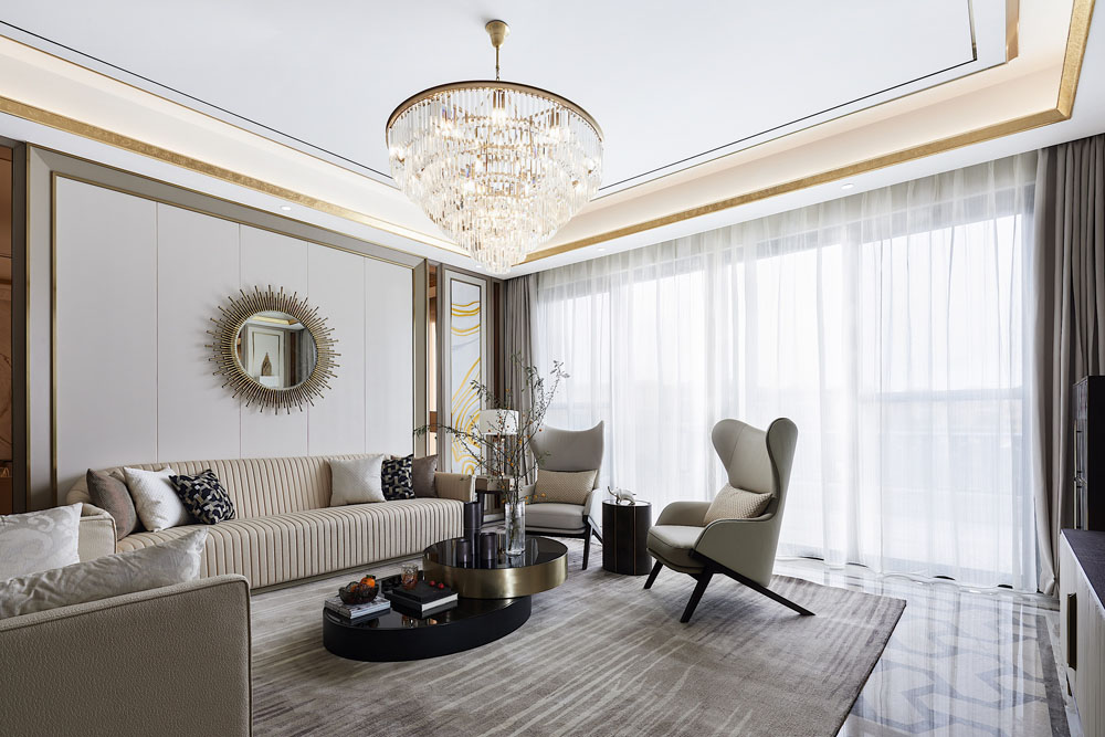 生活是精神意識的再現,所謂的奢華,是拋開表象之后所獲得精神上的愉悅與清寧。米色的溫柔與金屬的質感打造出素雅精致的藝境。清風徐來,透過紗簾悄悄融入親朋間的溫馨家常。想象需要被預留空間,讓每一天都充滿未知的驚喜。