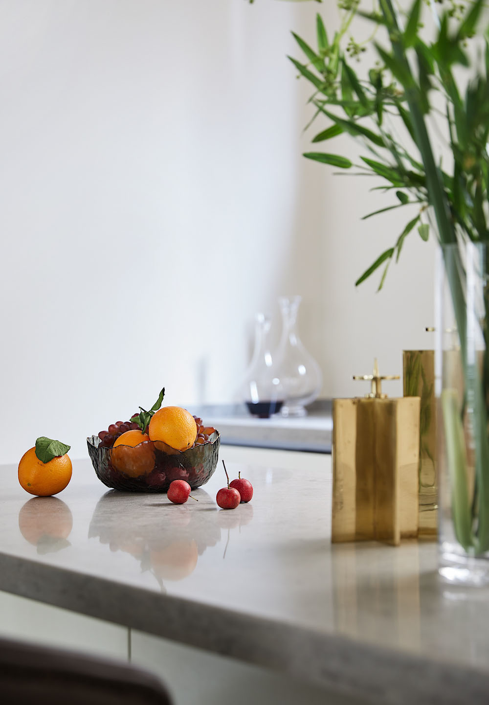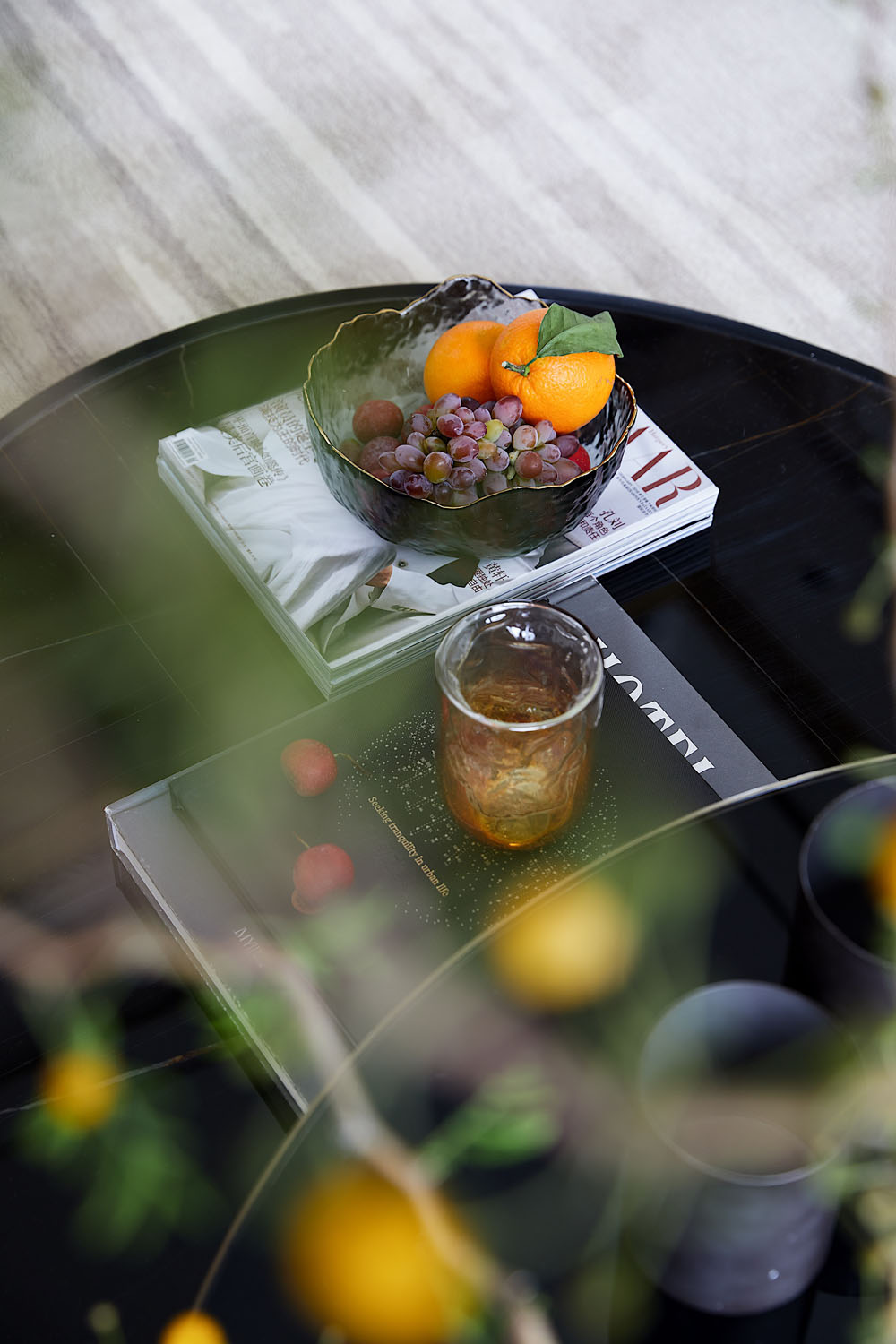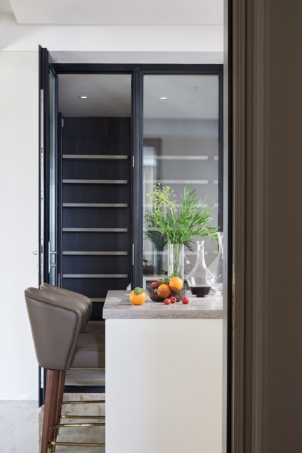 日光通過百葉窗映照在西廚島臺上,順應季節(jié)時令,品嘗最鮮甜的果味,亦或倚靠吧臺,來一曲舒緩慵懶的藍調,和愛人小酌片刻,都是精致的存在。