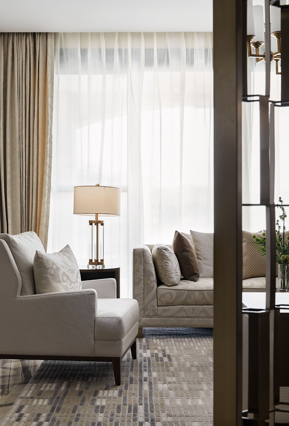 設計師鄭鴻以居者家族的凝聚力為起點,結合地域文化抒寫歸家的情懷。在輕奢美學與自然風物的融合滲透中,傳遞著充滿雅趣而恒久的審美,讓空間充滿安適舒愜的韻致。