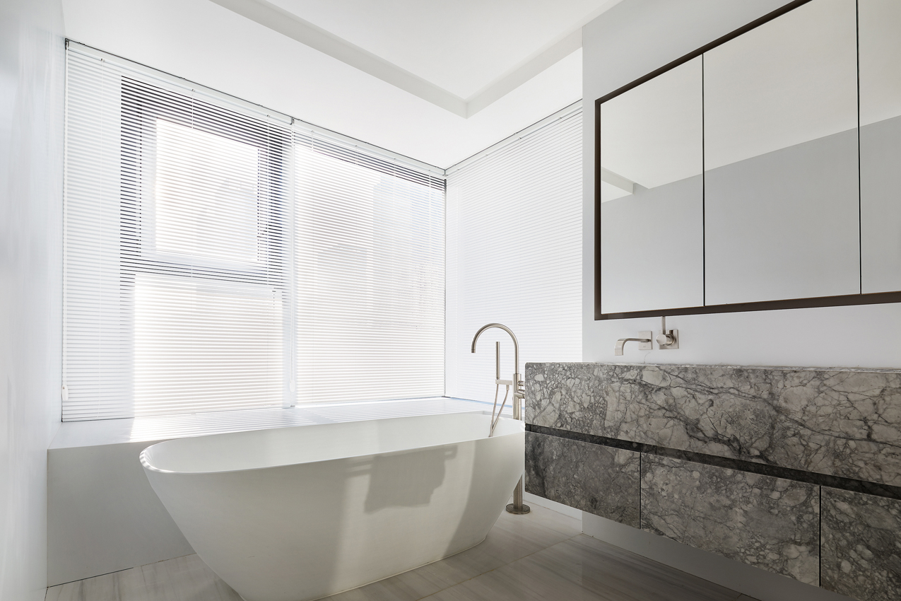 能為幸福的家錦上添花,是設計師對空間最虔誠的致意。如輕舟般翩然的島臺是設計師徐靜的特別創作,隱藏式的收納,明凈的視感,自然的石材肌理,配合游刃自如的空間情境,素雅輕靈,滿含著三餐四時的生活哲學。