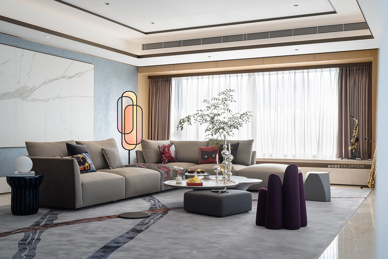 當暮色四合,世界漸漸安靜,紫色煙霞似一幅油畫暈染了城市繁華的天際線,落在室內是欣然盛開的紫色花朵,野趣的蜥蜴擺件慵懶地趴在沙發(fā)一角,水滴狀貝母光澤感茶幾承載著綠意的生機勃發(fā),讓人充滿浪漫詩意的遐想,不知是自然闖進了生活,還是生活本就如此極致燦爛。
