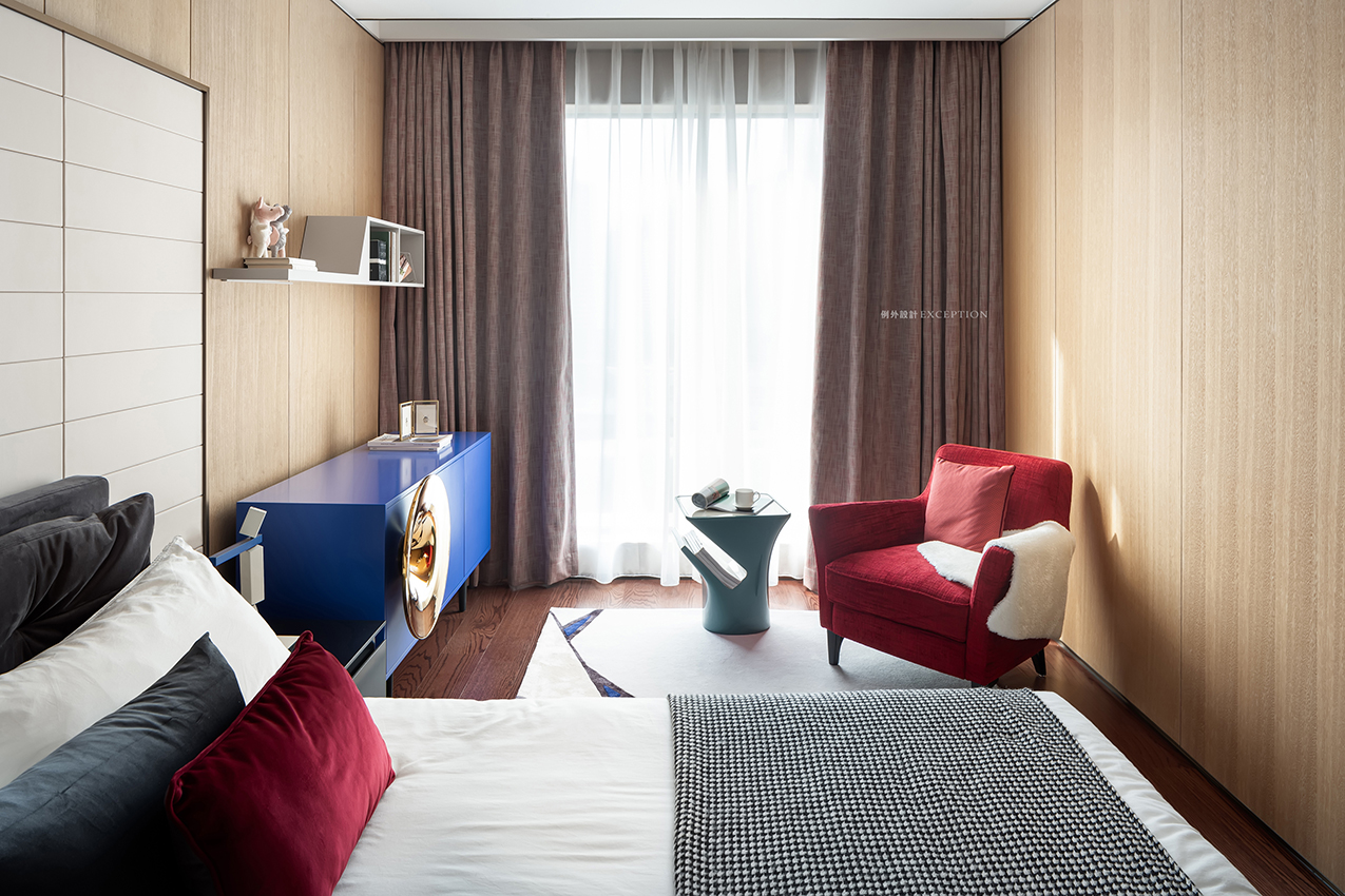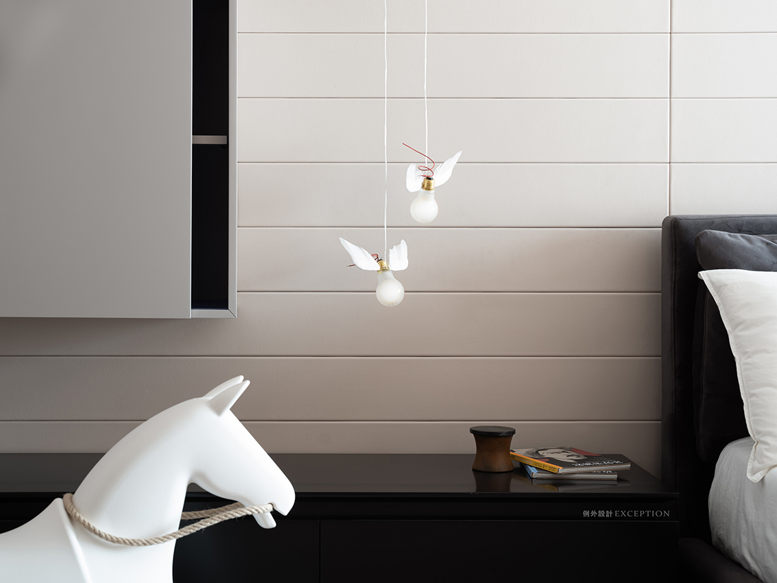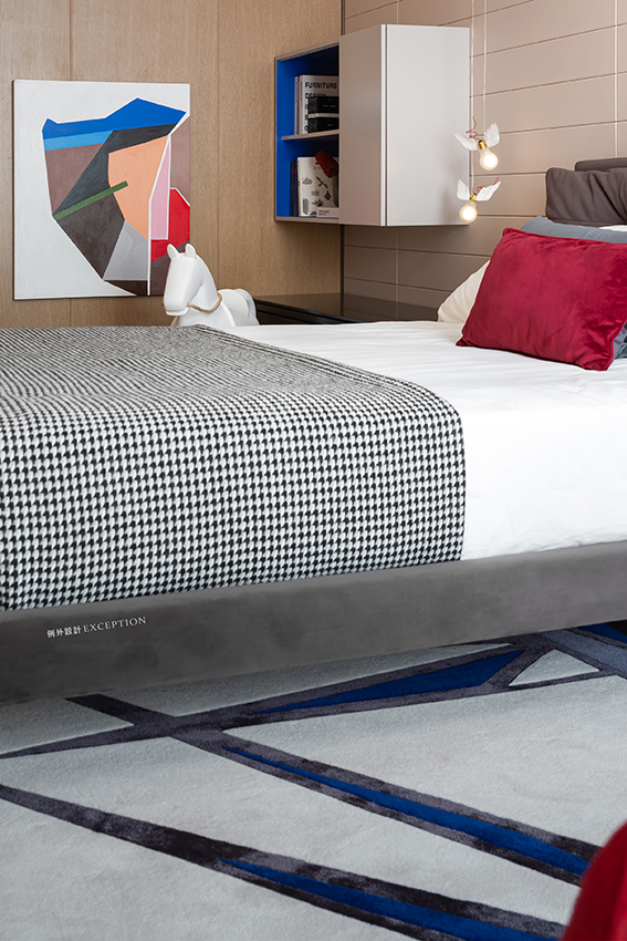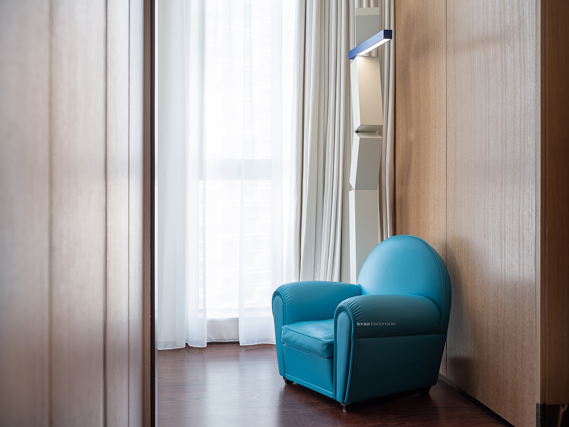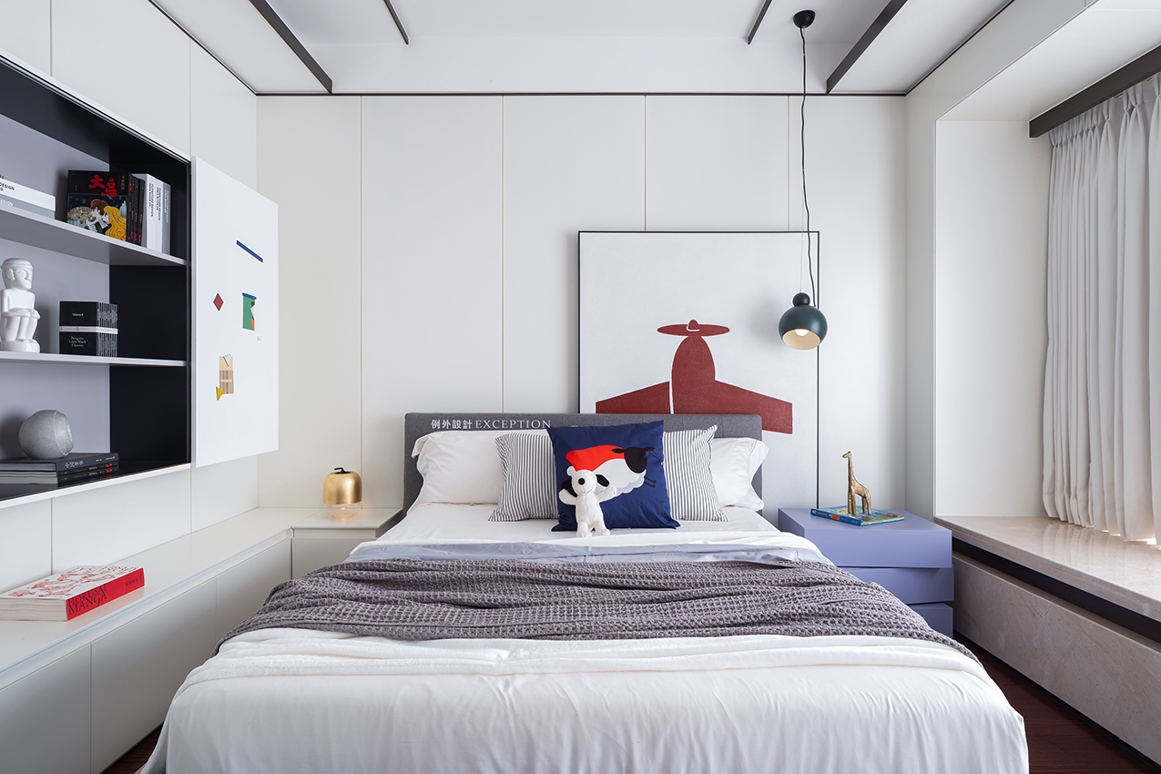 對藝術的向往不分年齡,無關時月。長輩房以木色塑造平實質樸的意境,飛鳥燈玲瓏巧致,與燕尾元素地毯一起賦予空間祥和美滿的生活愿景。當悠揚的曲調從嵌入式音箱里緩緩而出,一切都恰到好處,最好的狀態(tài)便是隨心所愿地墜入對生活的本真期待,慢慢去感悟。