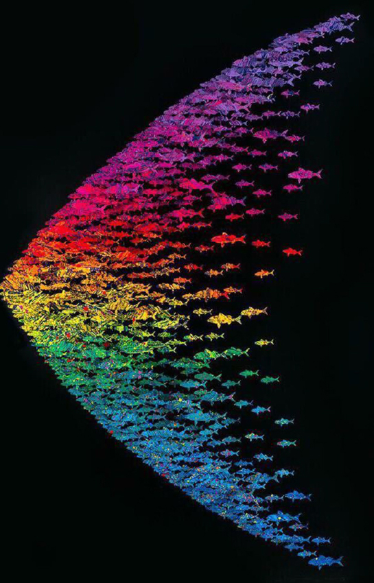 身披最個性的七彩,向著心中的大海溯游,沿途有暗潮洶涌,也有霞光,漫天星河閃耀,在尋找自由與風景的征途中它們便是最美的風景,設計師以藝術的呈現賦予了空間動感多彩的生命力。