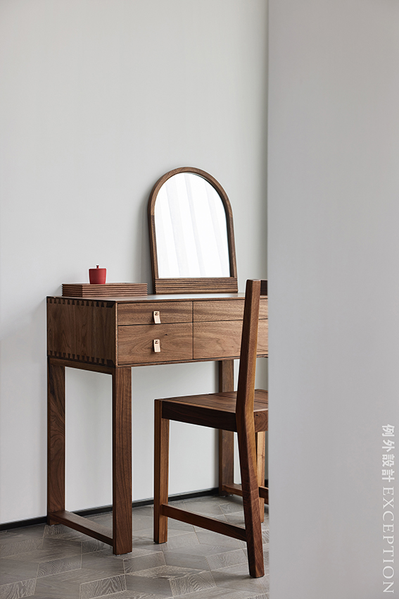 木作的梳妝臺,靜靜地展現在窗邊,素璞而自然,像一個充滿故事的觀者,記錄著時光里的笑顏與氣質,任憑四時流轉,依舊別樣芳華。