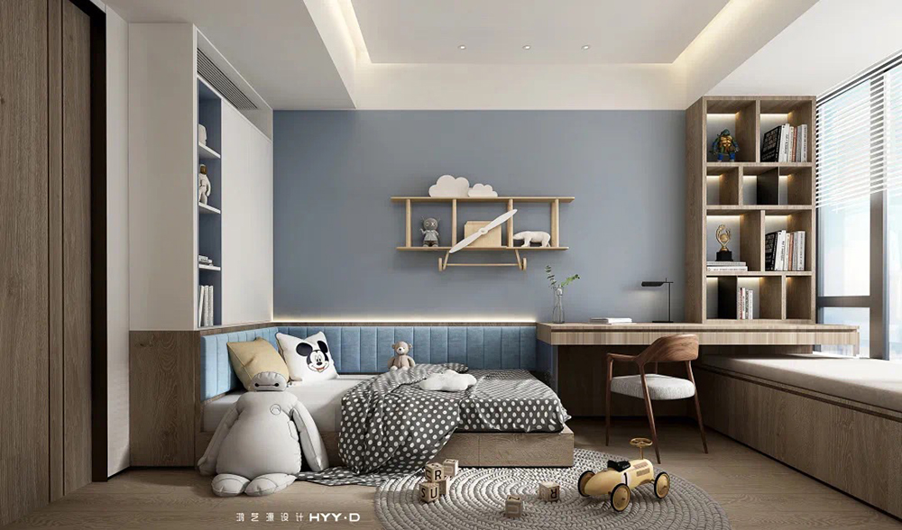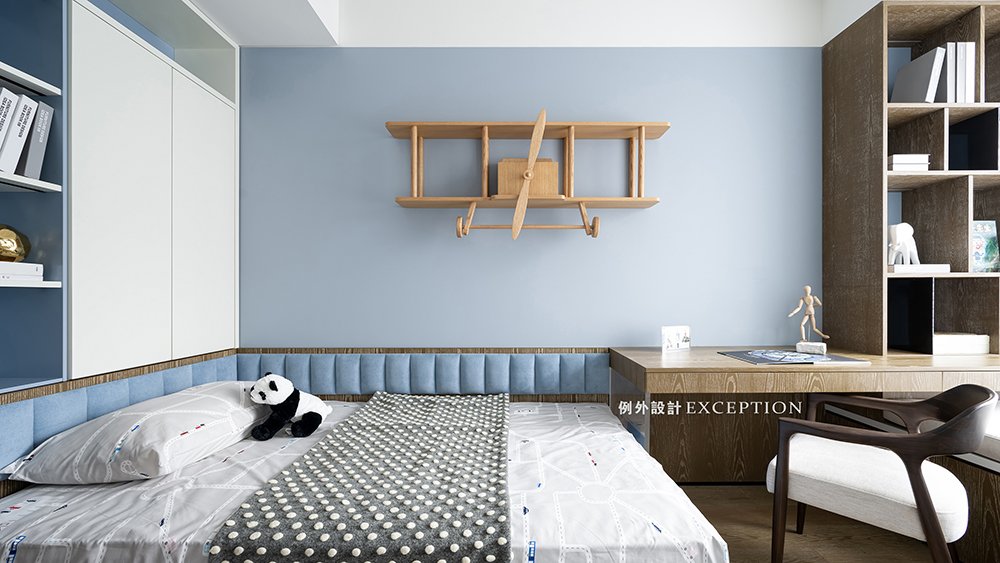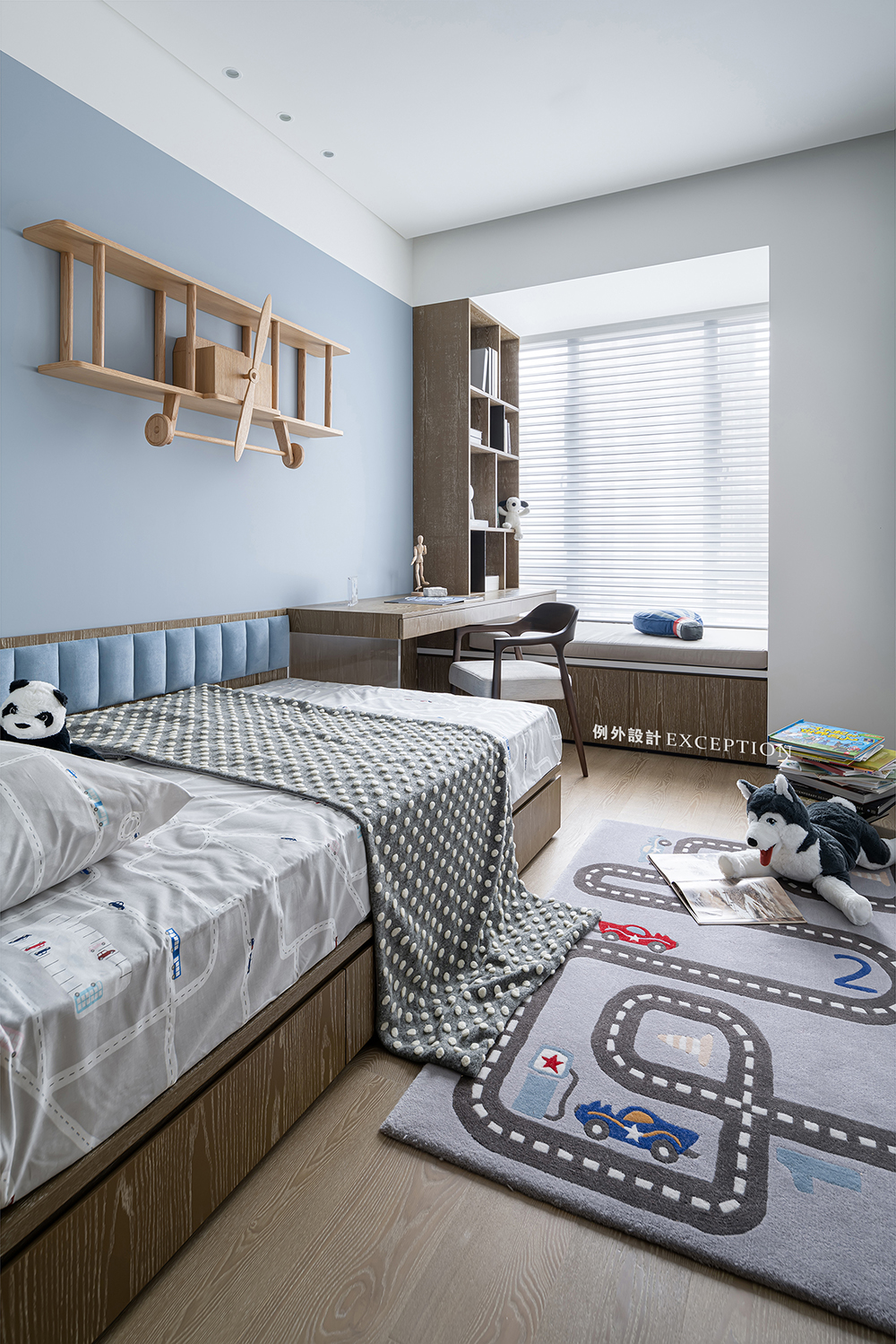 巴烏斯托夫斯基說過:只有當我們成為大人的時候,我們才開始懂得童年的全部魅力。在兒童房的設(shè)計中,充分考慮了孩子的成長周期,空間布設(shè)靈活可變。木飛機、卡通小擺件、童話繪本,每一個細節(jié)都是在完滿孩子的小小世界。