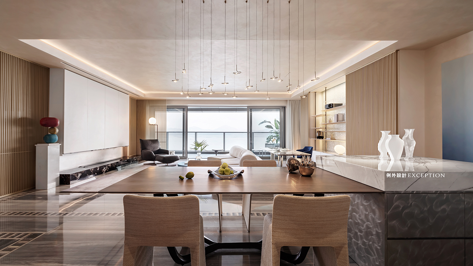 對于都市里的家而言,自然是最奢侈的裝飾品。夏日的海風清冽純凈,陽光如碎金在海面雀躍閃爍,屋主M小姐傾心這種純粹簡約的美好,從陽臺眺望遠方的山海,總會在這片寧靜中恍然,瞬間忘卻縈繞心頭的繁雜。