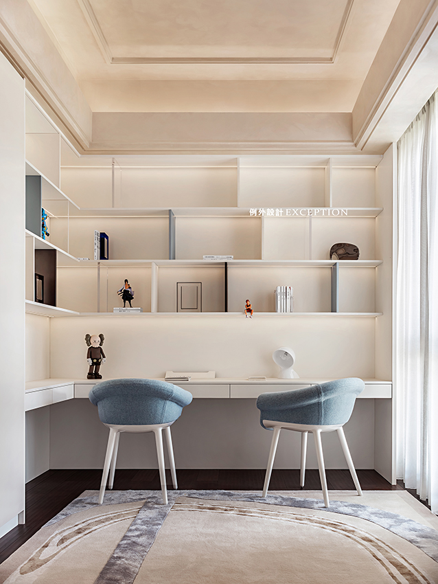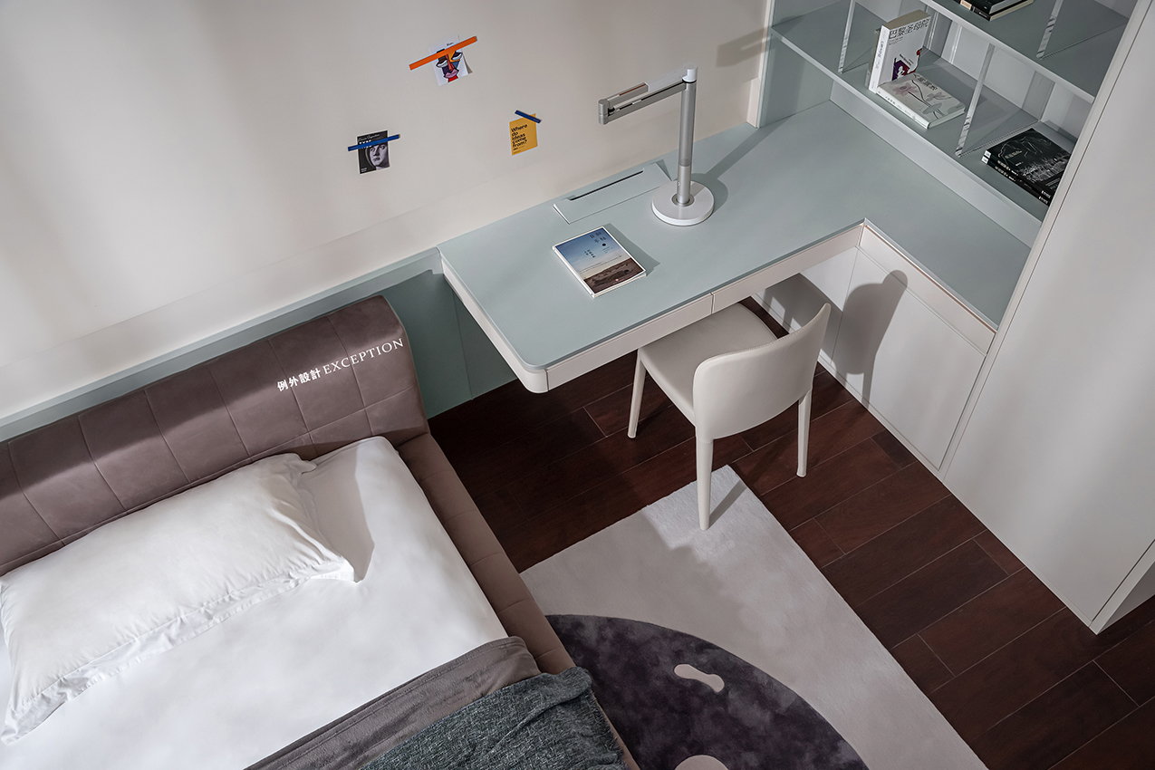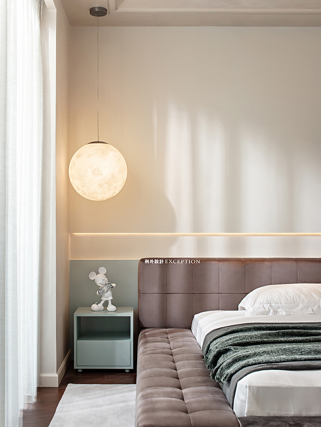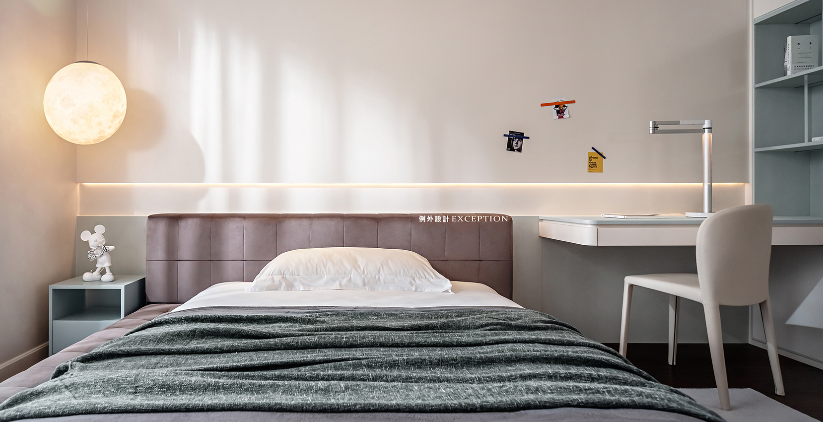 清晨的陽光溫煦明媚,是大自然對人類永不停歇的福澤,讓人滿懷希望去奔赴、熱愛。臥室是孩子成長的庇護所,良好的觀景視野是他創想可以抵達的遠方,柔和的色彩也為小小的個人天地預設了溫暖純澈的方向。