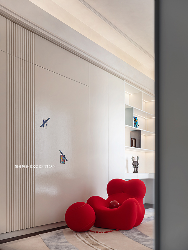 設計師希望兒童娛樂區是一處能承載個性、安放快樂的異想世界。繪畫閱讀區、奇趣手辦和磁性白板墻,多重場景的構設豐富了他們的成長記憶,讓童年的快樂蕩漾在生活的每一個角落。