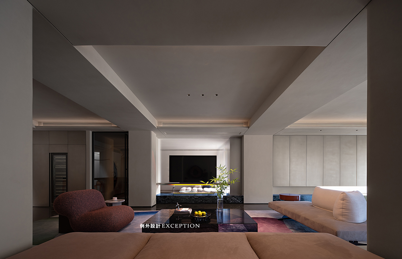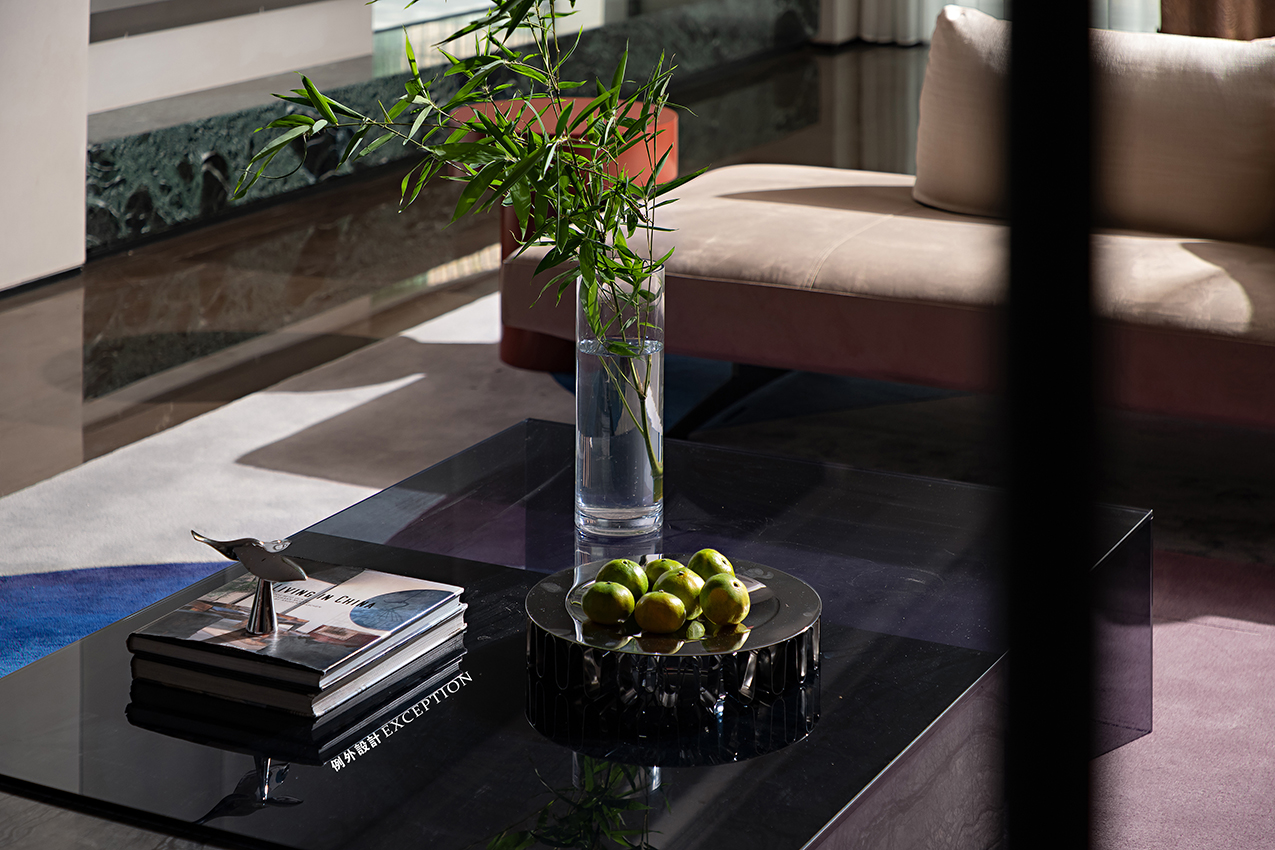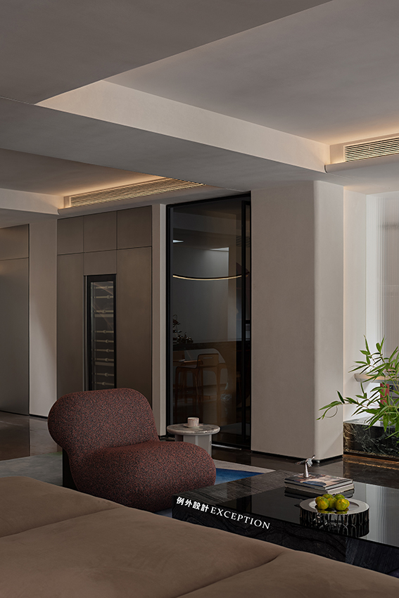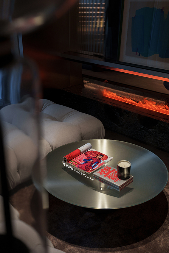 靈活的設(shè)計可以還原生活自由的本質(zhì),生動的居住場景源于對真實生活的精準(zhǔn)洞察。會客區(qū)結(jié)合原結(jié)構(gòu)柱體增加懸空地臺,與沙發(fā)巧妙配搭,詮釋了暢達(dá)舒適的空間感。鏤空區(qū)不僅關(guān)注到實用性,以不銹鋼收納柜和電子壁爐的形式具象了家的溫暖氣質(zhì),更成為一扇窗口,讓室內(nèi)與室內(nèi),室內(nèi)與室外形成了微妙而不疏離的聯(lián)結(jié),寥寥數(shù)筆便勾勒出屋主會客場景下的輕松與自在。