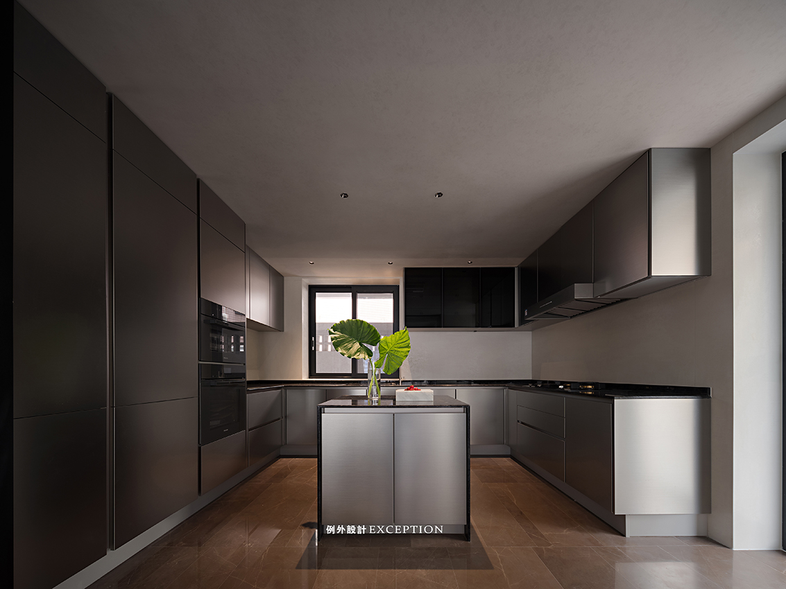 幸福藏匿在具體可感的日常中,我們聽到的、看到的、嗅到的,所有感受到的才是最讓人共情的。屋主之前有在國外生活的經(jīng)歷,設(shè)計師為此增加了島臺,和四周金屬質(zhì)感的柜體搭配起來,是煙火日常里最安心、便利的存在。