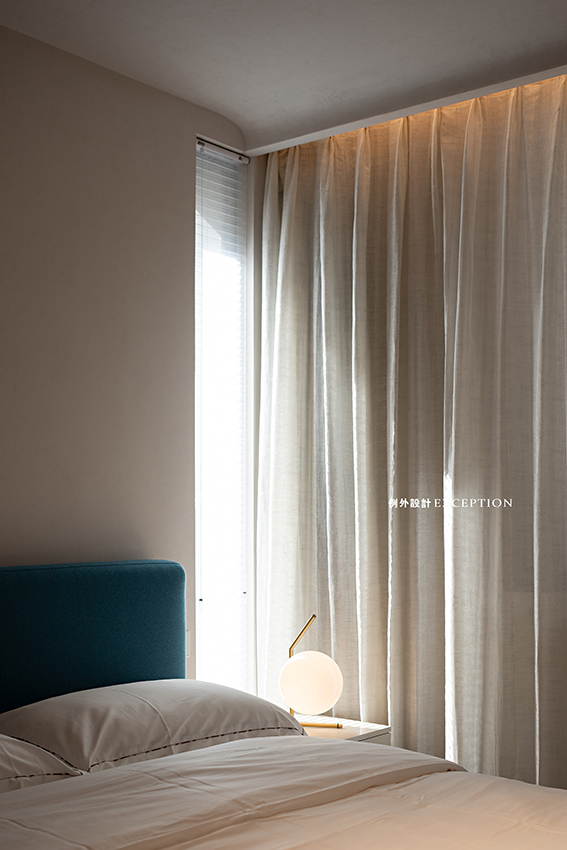 長輩房雙床配置,是對彼此的關(guān)愛和互不相擾。在軟裝的配設(shè)上以極簡為主,陽光透過玻璃在床屏上留下溫暖的痕跡,空間靜謐優(yōu)雅。