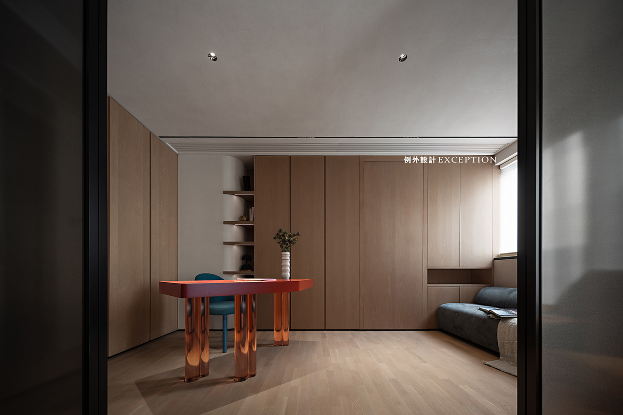 書房琥珀色書桌呼應(yīng)睡眠區(qū)同色單椅,在低調(diào)的米灰空間融入絲絲入扣的溫暖氣息??此撇唤?jīng)意的配搭,一切都渾然天成。