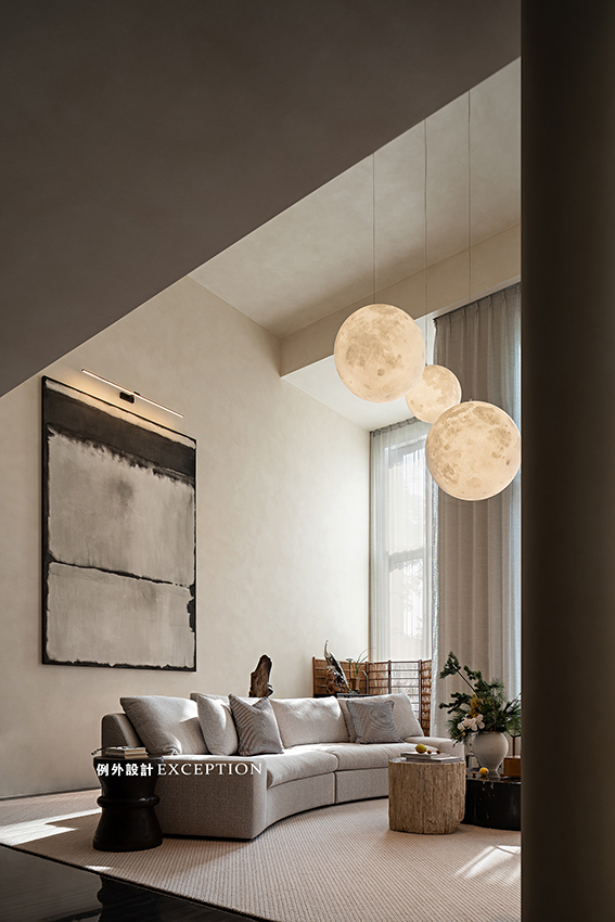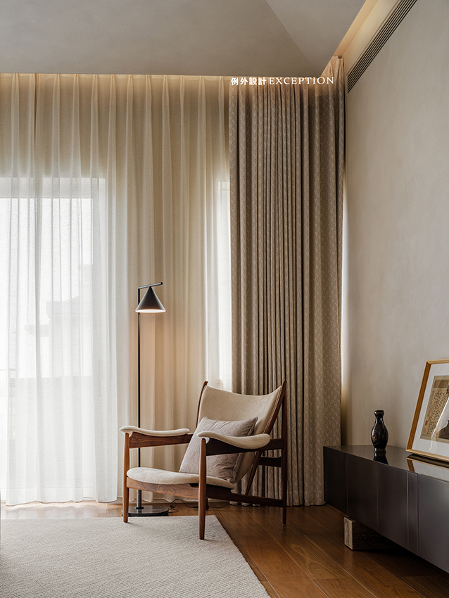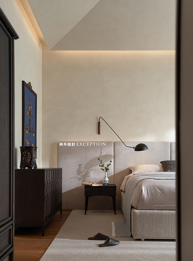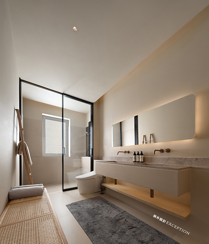 鴻藝源&例外設計以藝術涂料和實木材質定下空間的硬裝基調,柔和溫暖,包容性強。四時的園林景觀透過橫窗和格柵,將清雅和生機引入室內,讓心靈隨時都充盈著極致的閑適。