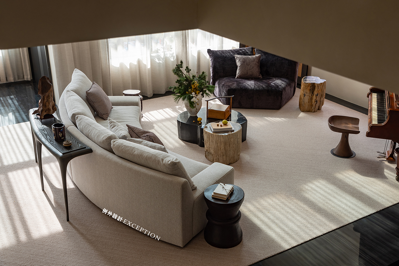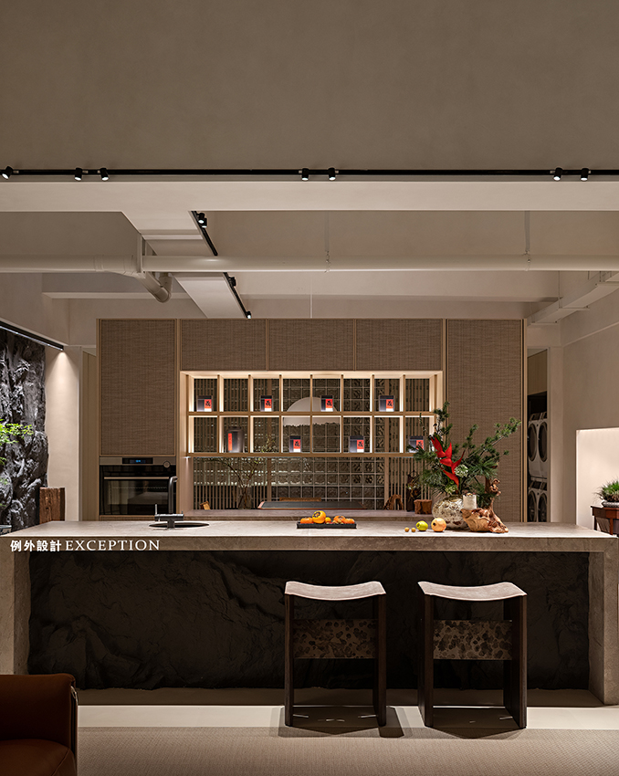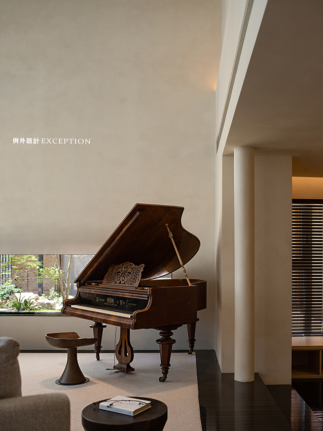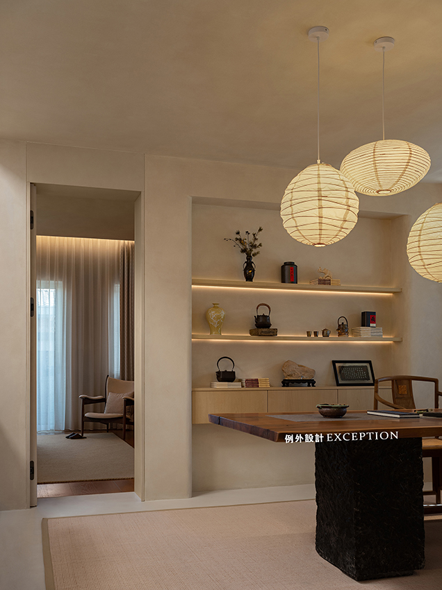 光線欠佳的地下室,設計師加入格柵窗和透光處理,引光入景,豐富了空間的層次。木質、灰泥、天然石材和器物收藏,強化了靜謐古雅的語境,讓人處于其中,身心和洽,靈韻悠悠。
