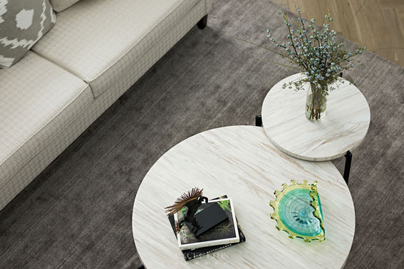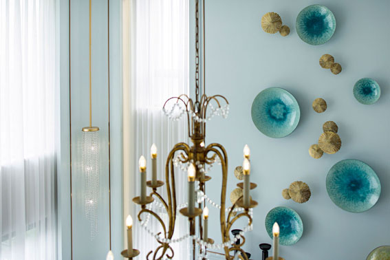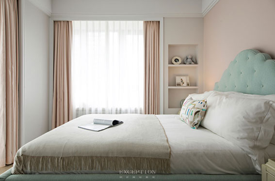 客廳有一種撲面而來的女性氣質,除了溫柔藍色帶來的第一視感,還有面料所蘊含的神奇魔力:精細規則的紋路、面包般的外形與松軟觸感。