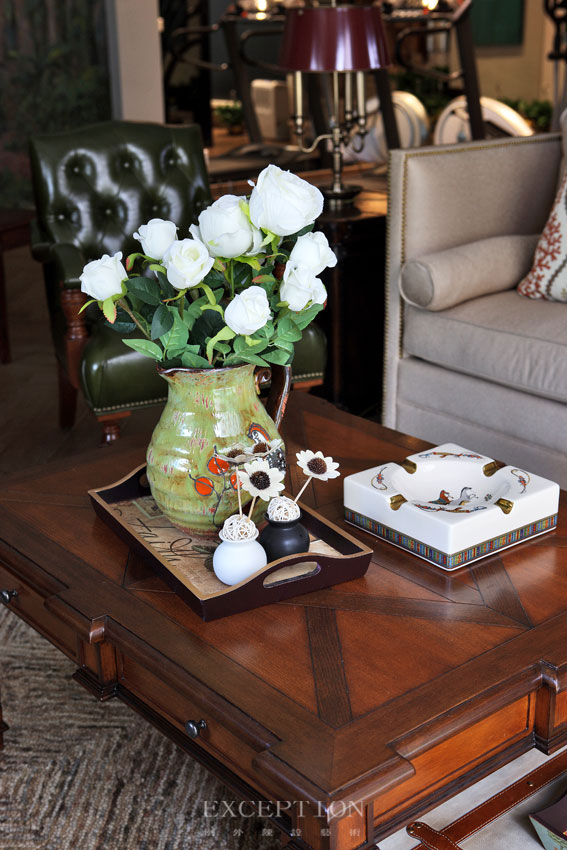 在這個日常社交功能空間,軟裝亦從點滴細節(jié)追逐著主人的喜好與品位。白玫瑰插花錯落綻放裝點著勃勃生機,而一旁的香氛更熏陶出優(yōu)雅浪漫的味道,舒緩心緒,靜氣凝神。
