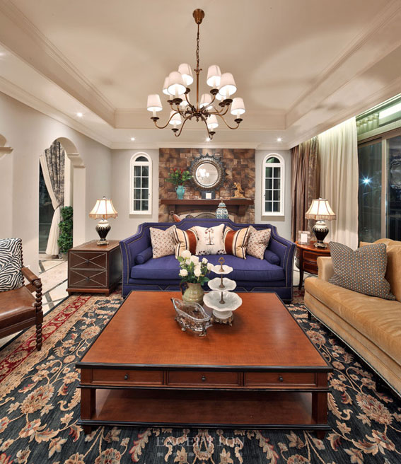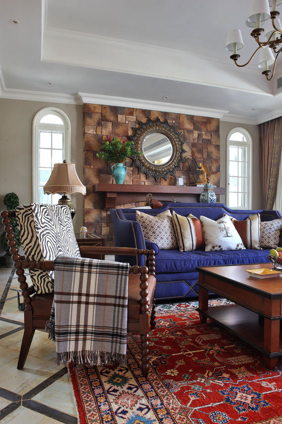 大面積落地窗,開放的格局布置讓客廳區(qū)顯得明亮寬敞,柔和的自然光線讓一切家私材質袒露出原本的肌理和自然的色澤,不正迎合了美式生活方式的自由隨意、天然舒適么。