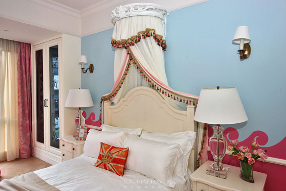 讓開朗可愛的女兒在這樣一個粉彩色鋪就的房間成長,想來就是一件很美妙的事,慣常的粉藍與粉紅搭配,卻因細心繪制的海浪圖案萌生出些許的浪漫活潑,此時家私、床品色彩的選擇上便以白色為主,避免色彩的堆疊繁復,給孩子一個優(yōu)雅純凈的空間。