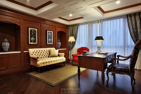 簡歐風格的迷人之處就在于造型、紋路、雕飾和色調簡約而細膩,耐人尋味處散發出亙古久遠的芬芳。而在美式風情的渲染之后,淡妝濃抹的木色,為細膩溫婉的硬裝潤色七彩陽光,砰然撞擊著視網膜的最大閾值,為靜美的空間注入了一份熱情的浪漫。