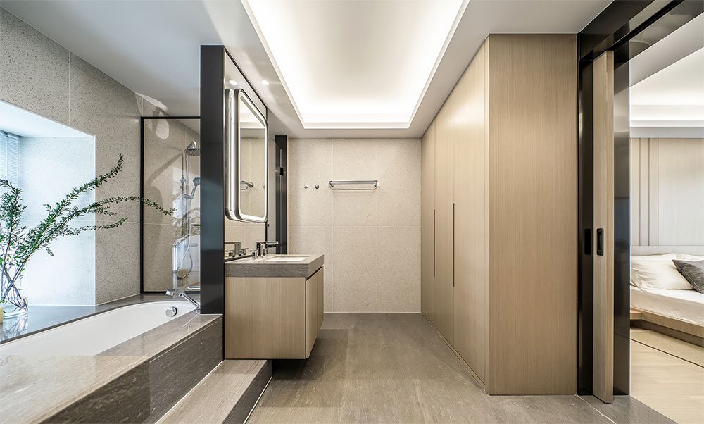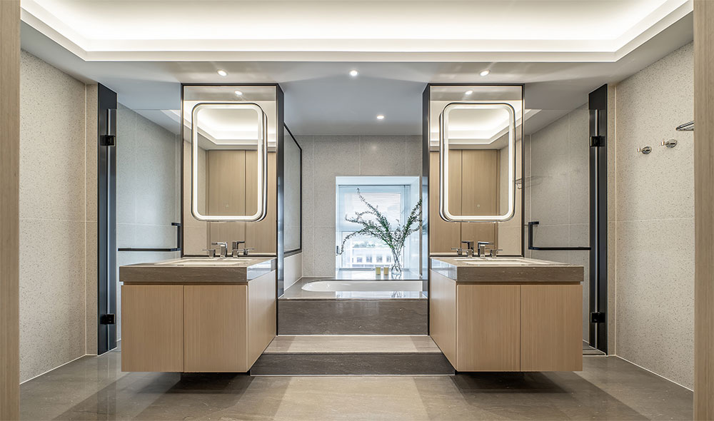 很多時候我們會覺得:一切一成不變的東西都是無趣的,很多新的東西往往都源于變化。在主衛的設計上,采取了雙盆設計保證了使用上的靈活性和便捷性,同時在光影、鏡面的反射上帶來溫情的人文影像,讓人發現新的樂趣。