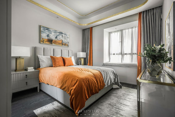 相較于熱情洋溢的客餐廳,主臥力求在舒適與藝術中尋求共鳴,但仍不放過任何一絲彰顯優雅的細節。