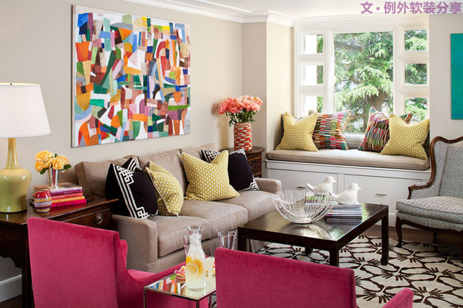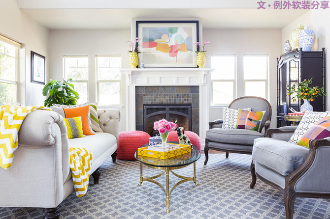鮮艷的軟裝單品,讓人眼前一亮,給整個空間帶來了活潑氣氛。