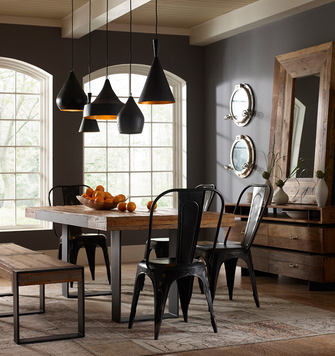 別具特色且品質(zhì)優(yōu)良的老家具,固有一種沉淀的美感,歷經(jīng)滄海桑田、繁華褪去后依然存留,并隨歲月更迭愈加煥發(fā)光彩。營造industrial style,要尋覓到真正的老家具恐怕不易,但是利用仿古材料,施以做舊手法同樣可以達(dá)到時(shí)光斑駁的效果。露出木筋,創(chuàng)造倒邊及銼痕,再配合暴露的金屬質(zhì)感,沉淀的魅力唾手可得。