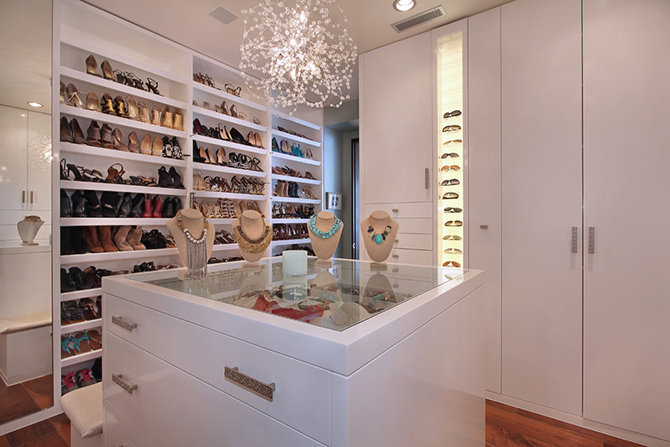 分類明晰的三個空間,銀色的首飾收納柜帶出濃濃的名媛氣質,悉心裝扮的生活就是如此醉人。