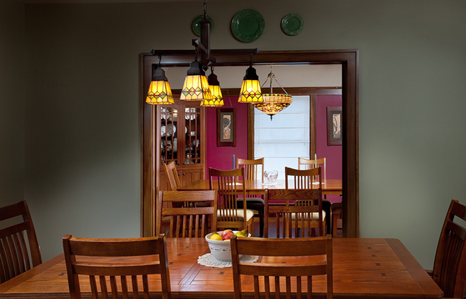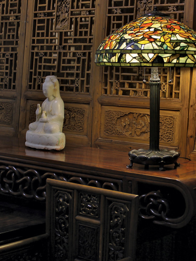 Tiffany Lamp承襲藝術大師Louis先生的原作風格,將精湛的現代工藝與高雅、古典的情趣融為一體,為現代生活點綴出一縷溫文爾雅、古色古香的風情。Tiffany Lamp帶有強烈的時代藝術和設計感,不過,喜歡蒂凡尼燈的看官們可要注意了,這種“個性”強烈的燈具對家居的要求也頗高,Tiffany Lamp合適的風格也比較“重口味”。如果你家里是簡約的現代風格,這種燈可能會顯得格格不入;對于輕巧的田園風,蒂凡尼燈也會顯得過于厚重。正確的搭配方式應該是傳統的中式、西式,或懷舊風的家居。Tiffany Lamp與西式風格相稱這點并不難理解,而與中式家居一拍即合又是為何呢?其實,早在民國時期,隨著西方文化風潮漸襲,Tiffany Lamp成了不少上流名士家中常見的飾品,直到現在,它跳脫出傳統的色彩樣式,在現代室內空間中演變出更多的驚喜。