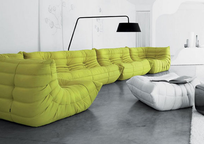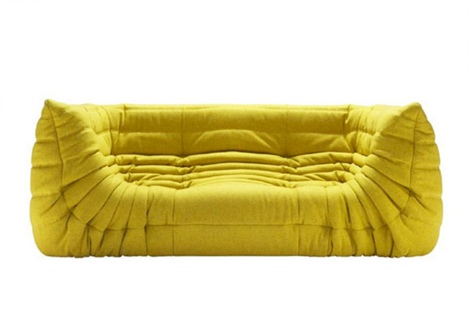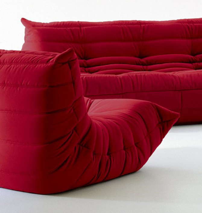 Togo 拋開復雜的外表,將簡潔與整體的設計落地,使座墊、靠背及扶手等組件合而為一,配合特別的縫紉技術,呈現多皺褶的視覺效果。Togo 系列以 6 種不同密度和 28 種不同造型的泡棉構成,令用戶無論以什么方式坐下都有貼身包覆的舒適感覺,用戶還可自由選擇單座、雙座或三座沙發,配合轉角座椅,適合放置於不同環境的家居之中。