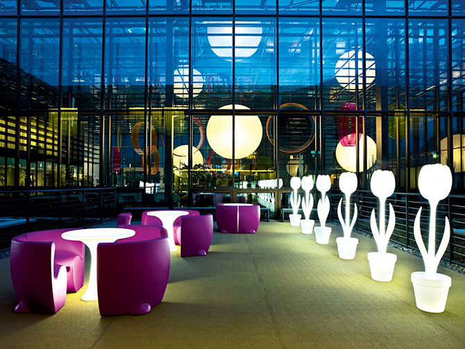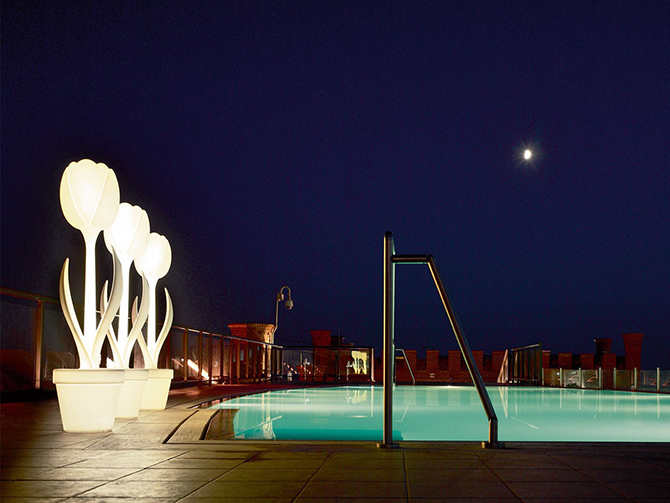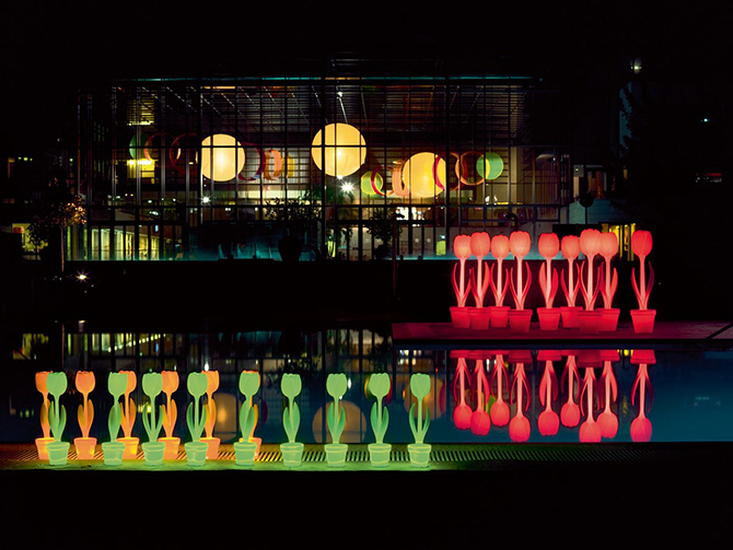 而XL型Tulip Lamp適用范圍更大,花園里、泳池邊都是不錯的選擇,此外還可以通過遙控器調(diào)整光色、亮度。XL版本的一大亮點是采用了LED,保證了低功耗,一個光輸出保證了精確的亮度優(yōu)化,同時可用腳開關(guān)體現(xiàn)了人性化的考量。當(dāng)然,設(shè)計師也考慮到它可能因為風(fēng)大而被吹倒,XL版本采用了氯丁橡膠電纜進行地板緊固,完全打消了用戶的顧慮。屆時,夜幕降臨時只需安心享受舒適浪漫的郁金香燈光派對了。