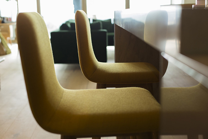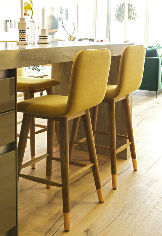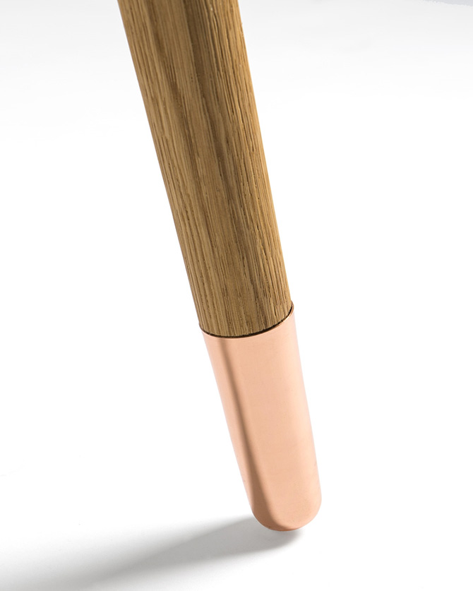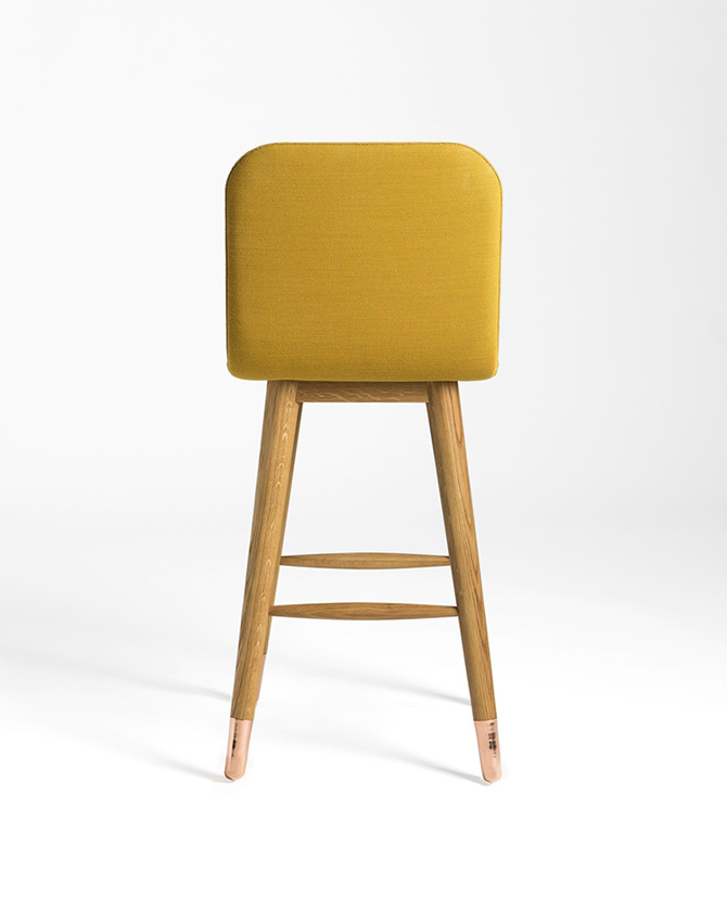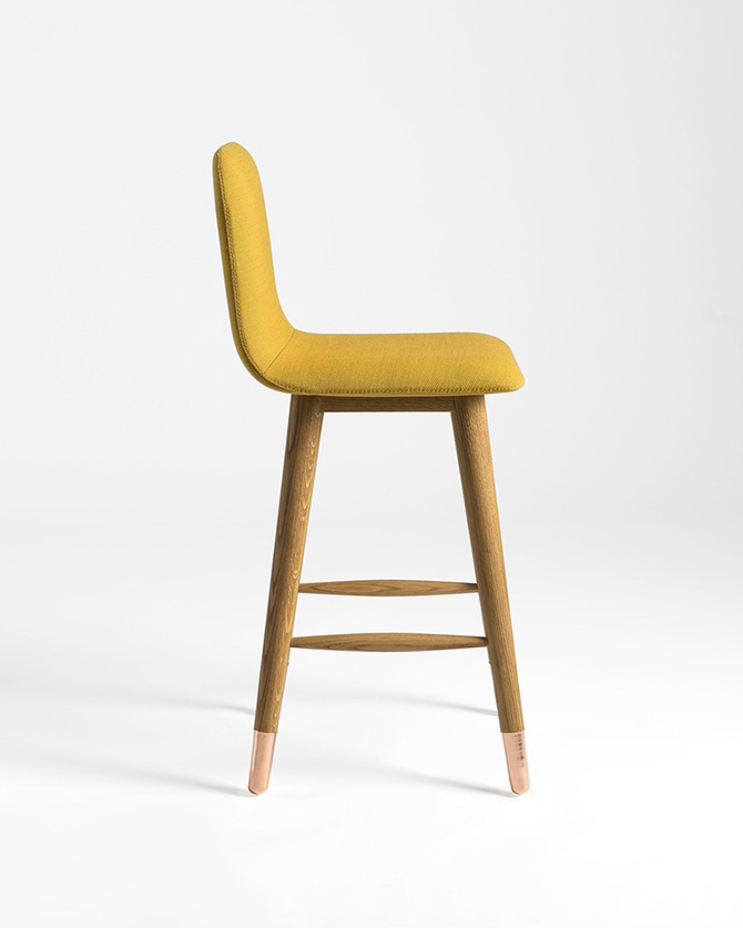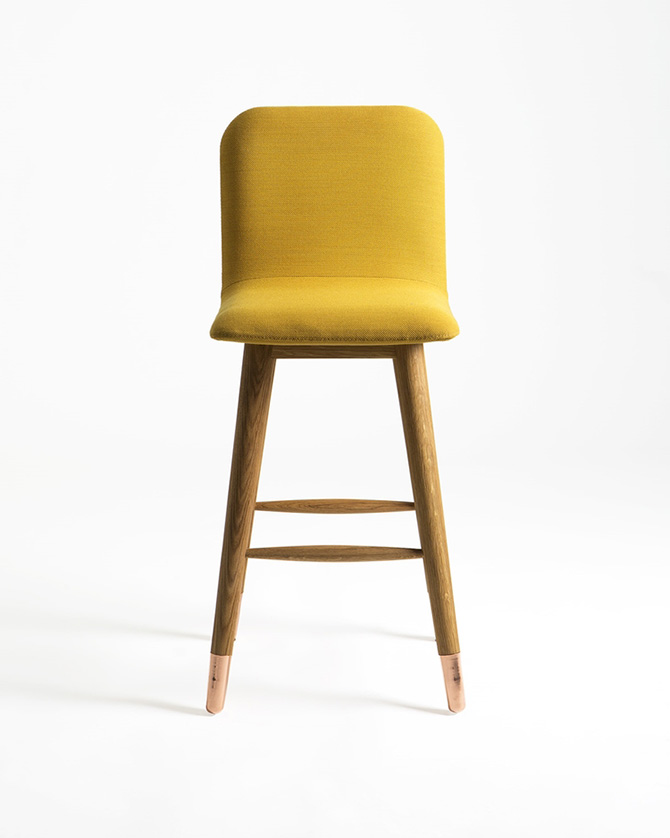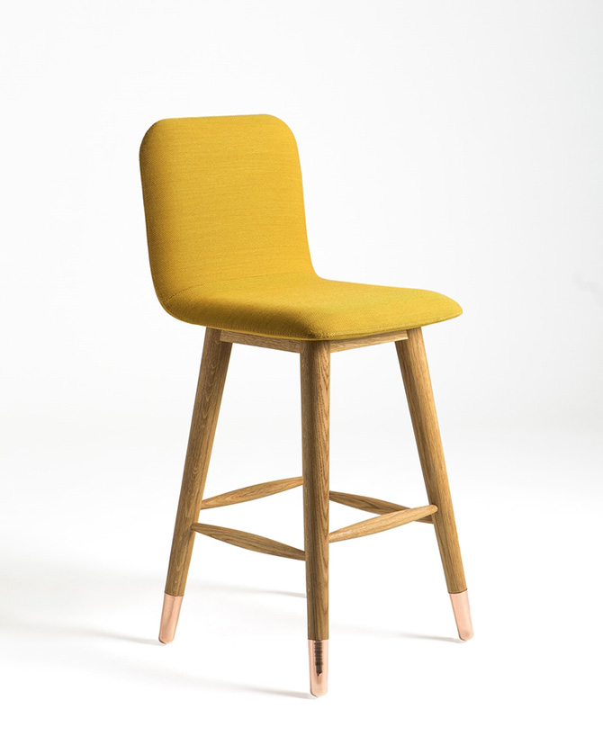 設計亮點:拋光銅和白橡木結合的凳腿,色彩鮮艷的Kvadrat軟包。