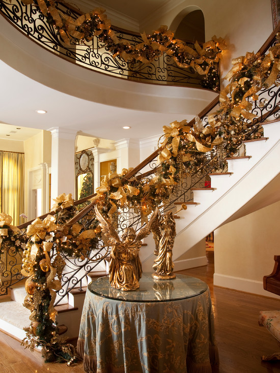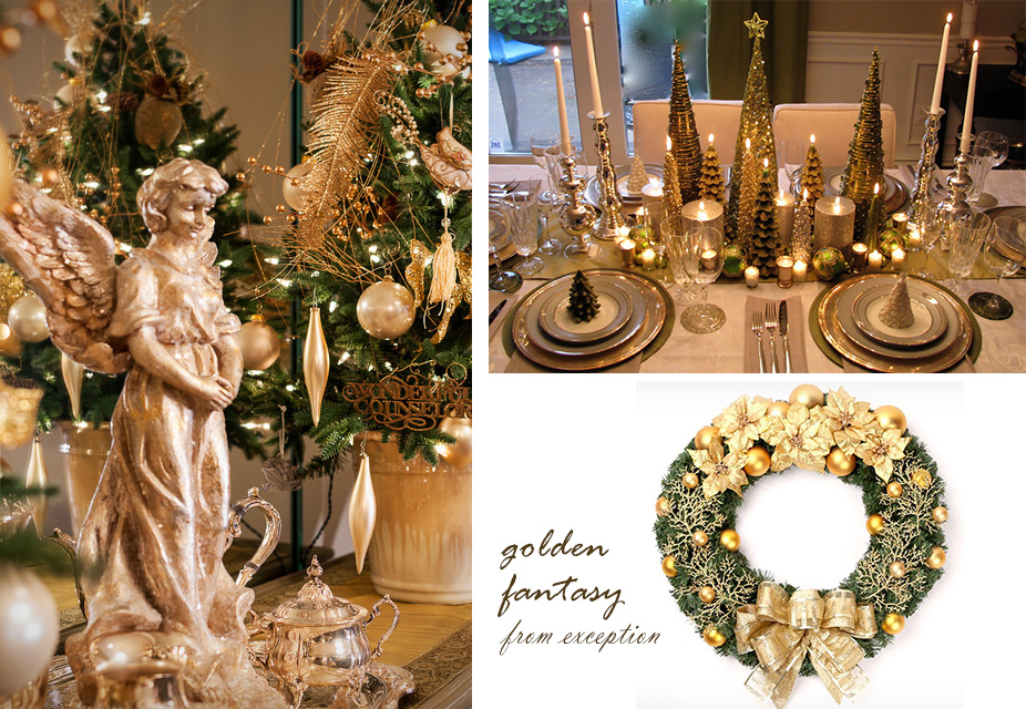 璀璨莫如金,世界上大多數國家的皇族顏色都是以金色為基調,與生俱來的華貴令它散發著光芒四射的魅力。金色,是一種輝煌的光澤色,更是大自然中至高無上的純色,它來自太陽,代表溫暖與幸福,同時黃金的價值賦予金色以滿足、、華麗、高貴、輝煌、神圣等象征意義。如果是平時,軟裝搭配大面積采用金色可能會落入俗套,但是圣誕節給你特權,以金色為主色調的圣誕布置尤其張揚且輝炫。例外設計師Jenny給我們推薦了以下幾款搭配方案。