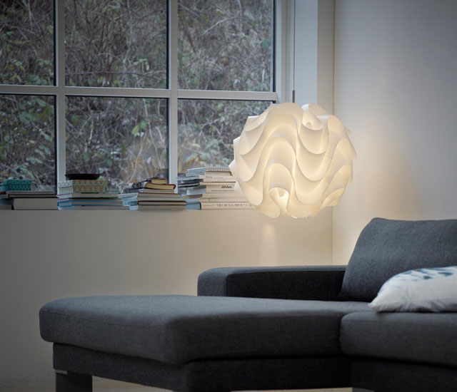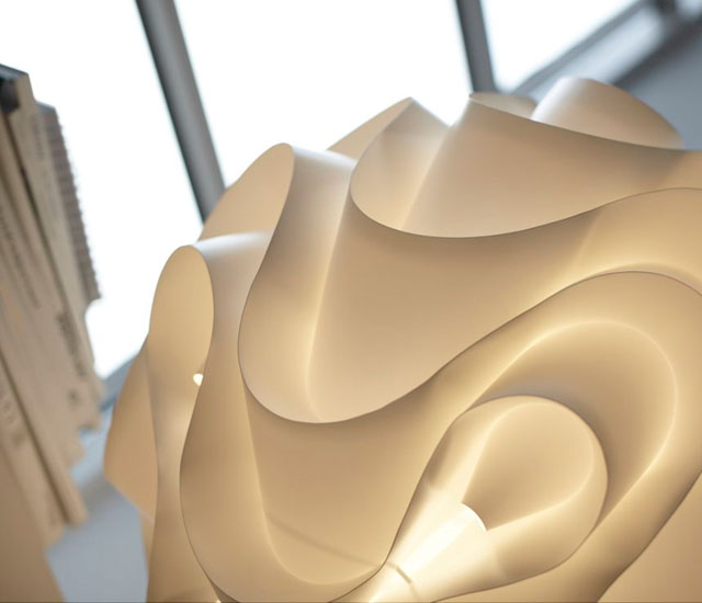 自然舒展的波浪形外觀,賦予燈光神奇的動感,其中不乏精巧的角度計算與過硬的褶皺工藝。