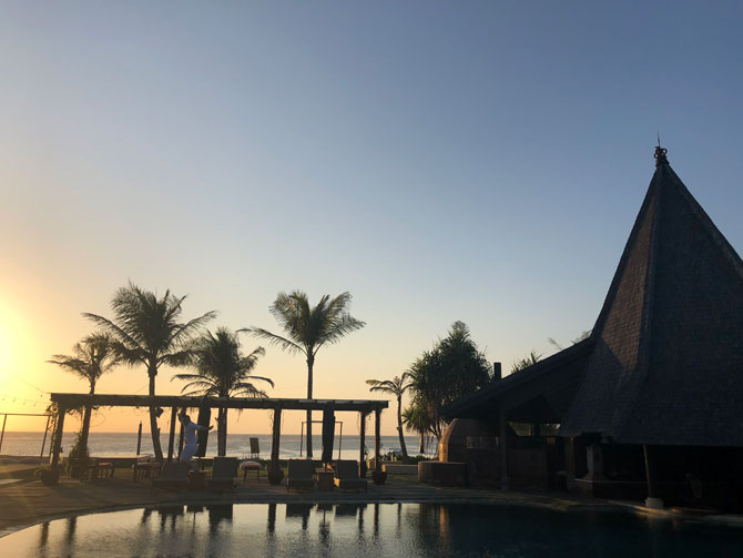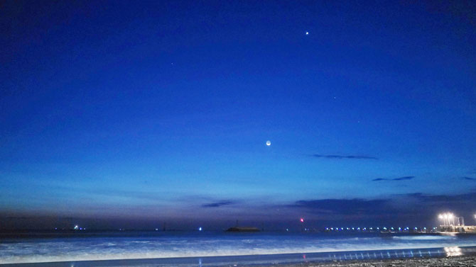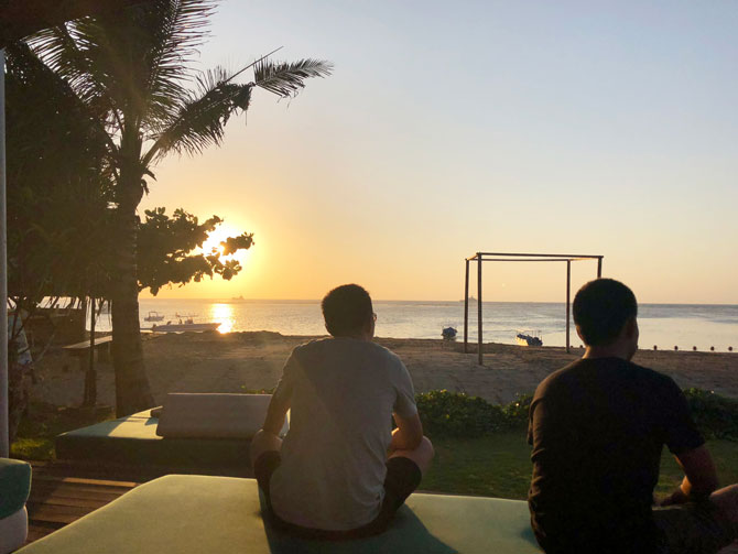 看了日出,哪能少得了日落?因?yàn)槎萝囄覀兺昝厘e(cuò)過了金巴蘭海灘的日落,但海邊的夜色了解一下?