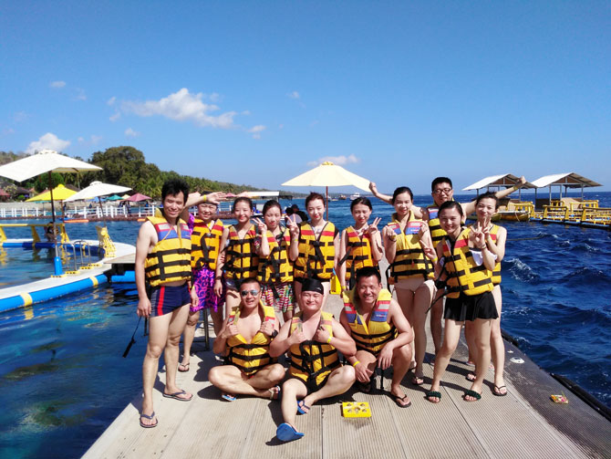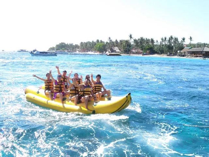Tips:除了巴厘島,稍遠(yuǎn)一點(diǎn)的貝尼達(dá)島其實(shí)也是個(gè)不錯(cuò)的選擇。這里的水上項(xiàng)目也很豐富,團(tuán)隊(duì)旅游的話一定要注意講價(jià),套票也很實(shí)惠,比南灣便宜很多!