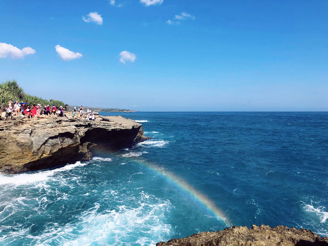 1、如何巧妙地避開游客又拍到彩虹,這就是學(xué)問啦!(我們的方法是“人多勢眾”,幾個(gè)人一起拍,別人一般都會自覺退出鏡頭)不過拍照的時(shí)候一定要注意安全,被大浪卷進(jìn)海里可不是開玩笑的!