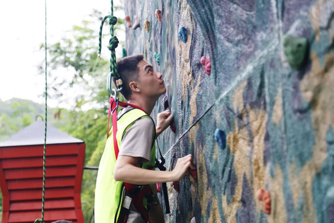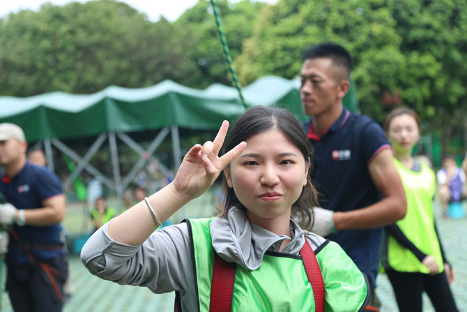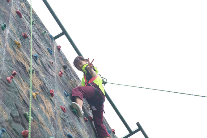 在攀巖項目開始前,許多小伙伴認為自己不能登頂,但最后很多人都到達了頂點。