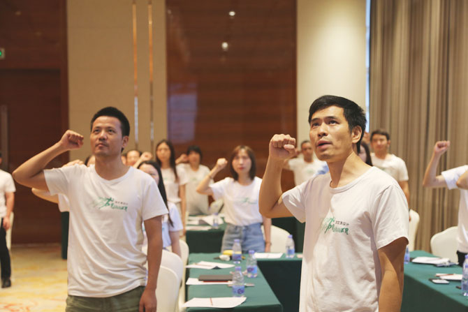 在這次精英強化活動中,鴻藝源總設計師鄭鴻帶領全體員工一起鄭重而飽含熱情的宣讀