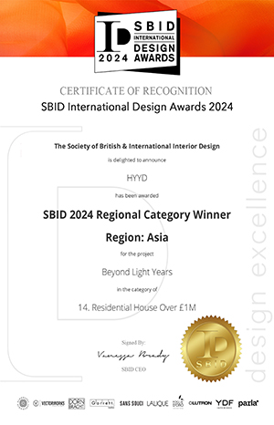 英國SBID國際設計大獎(SBID International Design Awards)創建于2009年,是室內設計行業最富盛名的獎項之一。獎項旨在表彰和獎勵在國際室內設計領域取得卓越成果的杰出工作者及團隊,幫助設計師挖掘自身的創造潛力,提升設計專業技能,促進業內交流與行業發展。該獎項還是第一個獲得獨立獎項標準委員會頒發的GOLD標準獎信托標志的室內設計獎,該委員會稱贊其是“獎項運作的典范”。獲得SBID國際設計大獎象征著極高的成就和榮譽。