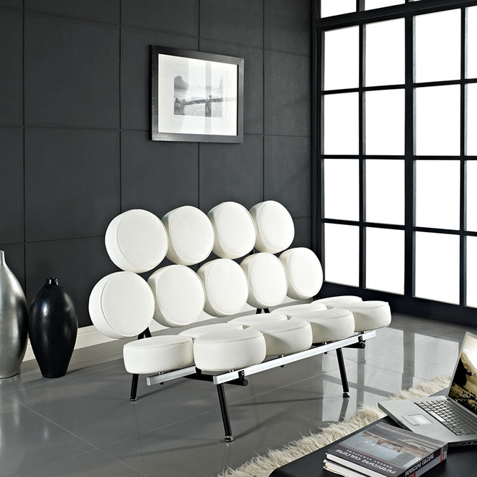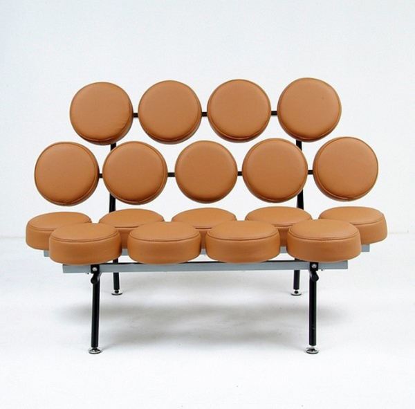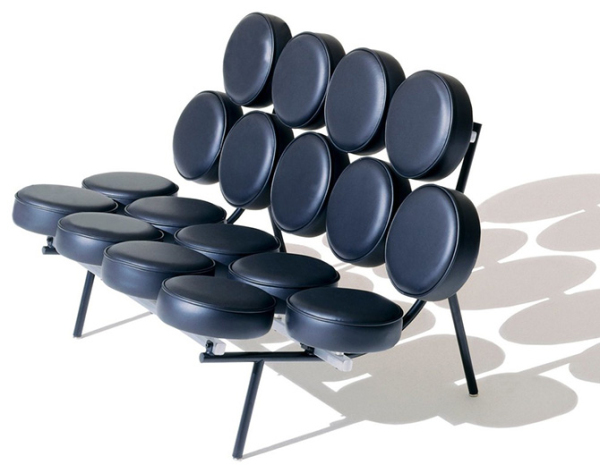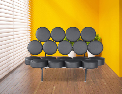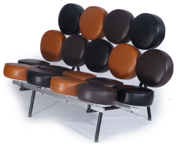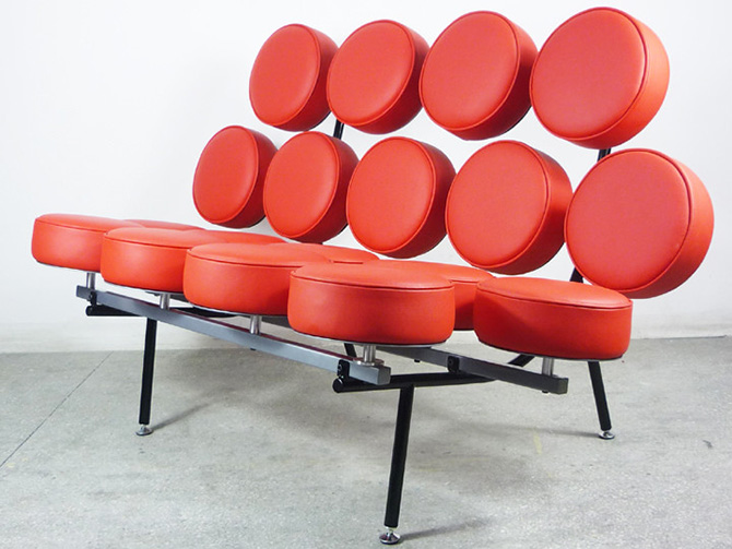 Marshmallow沙發(fā)是喬治?尼爾森有名的作品之一,譯為棉花糖沙發(fā),我們也叫它鼓椅,因?yàn)樗臉幼涌雌饋砭拖褚粋€(gè)個(gè)Tom-Tom鼓的排列組合。1956年,喬治?尼爾森和一個(gè)名叫艾文?哈勃(Irving Harper)的年輕設(shè)計(jì)師,被一個(gè)發(fā)明出注塑光盤的發(fā)明家所啟發(fā),認(rèn)為將這種形態(tài)用于沙發(fā)設(shè)計(jì)可以減少生產(chǎn)成本而且更耐用。當(dāng)時(shí)他們將18個(gè)這樣的注塑光盤安放在一個(gè)鐵架上,Marshmallow的原型就此誕生。后來Herman Miller家具公司在1999年將它加以改進(jìn),產(chǎn)品一經(jīng)推出便抓住世人的目光,迎合了市場要求摩登時(shí)髦又兼顧功能性的造型要求。