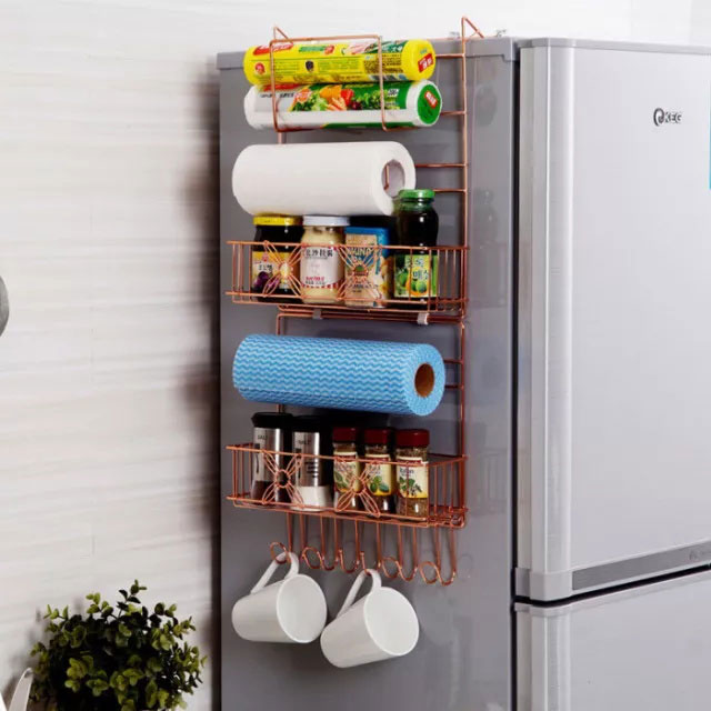有像下圖這種的冰箱置物架,根據冰箱的高矮,可以選擇相匹配的置物架,大大提升了收納效果。