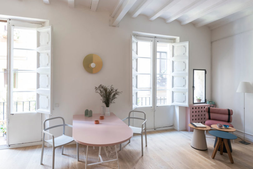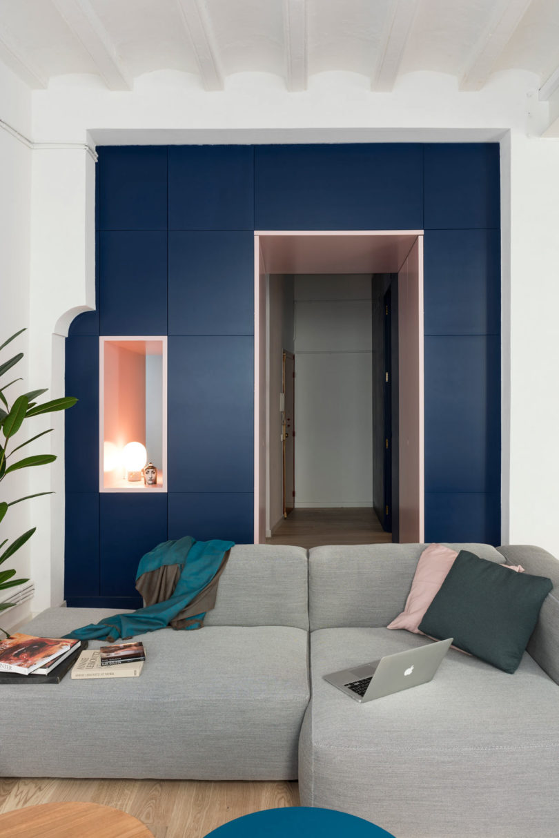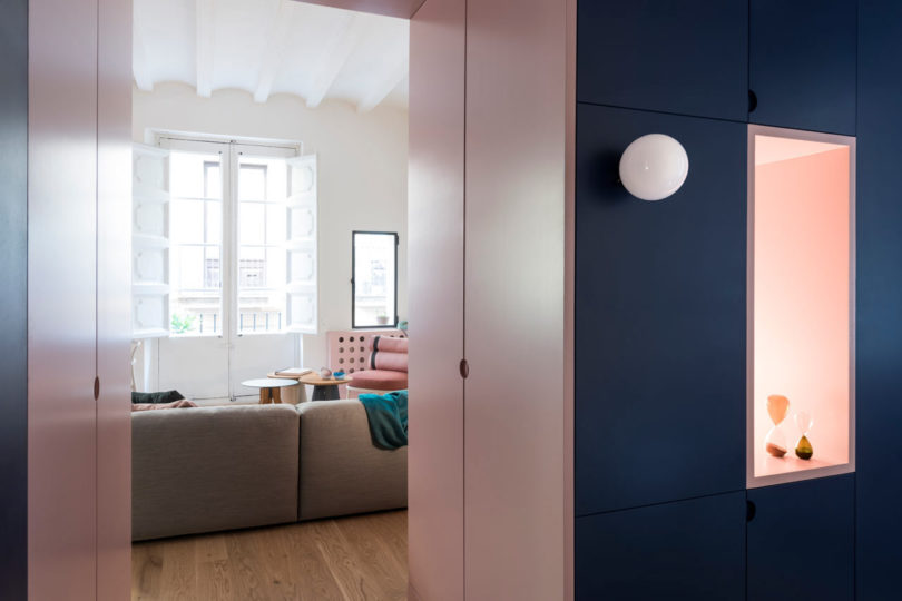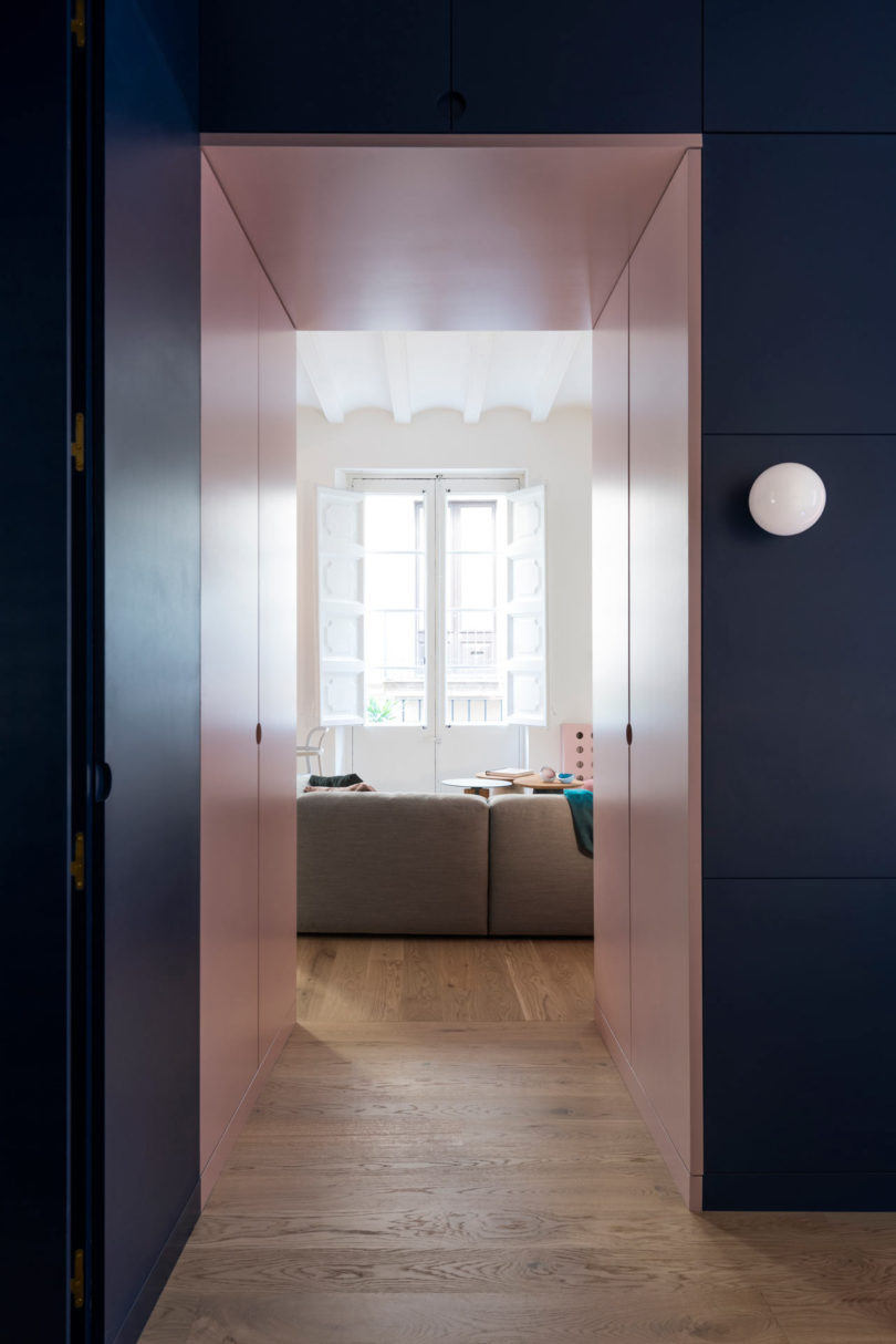 這間公寓位于巴塞羅那最古老的社區(qū)之一Born,總共65平米。居者是一個(gè)年輕女性,雖然是古老的社區(qū),但居者也有著自己對(duì)于生活的品位,于是聘請(qǐng)了Colombo and Serboli Architecture (CaSA)來(lái)進(jìn)行軟裝設(shè)計(jì)煥新改造。